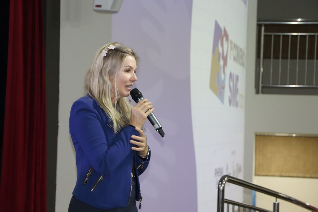 A palestrante convidada, Helda Elaine, vinda de Marechal Cândido Rondon, trouxe uma apresentação inspiradora sobre a Educação que Potencializa. Helda Elaine enfatizou o papel dos professores e educadores como agentes de transformação, capazes de impactar positivamente a realidade em que vivem. “É fundamental que os profissionais da educação se empoderem e busquem meios para aprimorar as práticas, deixando de lado as desculpas”, sugeriu.
