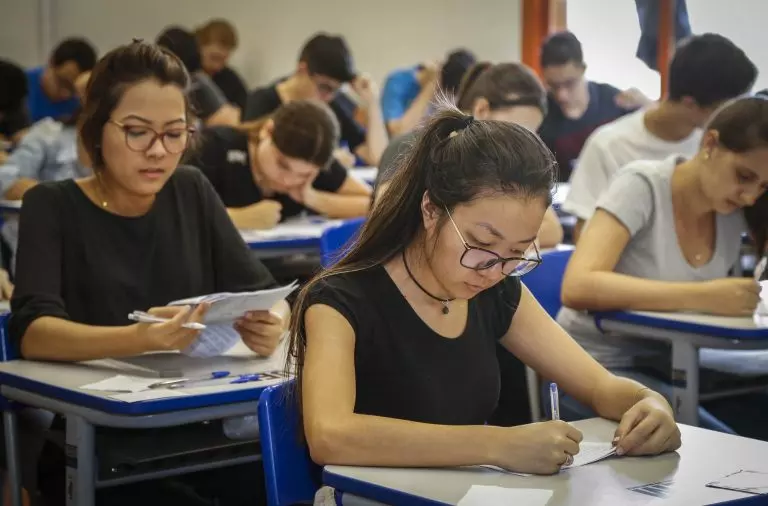 – O tempo mínimo de permanência é de três horas. Portanto, os candidatos poderão deixar o local de prova a partir das 17h. Às 19h, obrigatoriamente, os vestibulandos que estiverem em sala devem entregar a prova aos fiscais.