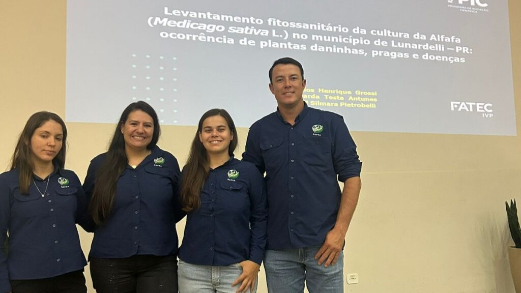 Levantamento Fitossanitário da Cultura da Alfafa (Medicago sativa L.) no Município de Lunardelli-PR: ocorrência de plantas daninhas, pragas e doenças. O estudo identificou espécies de plantas daninhas – além de avaliar a presença de pragas e doenças na cultura da alfafa, analisar impactos na produção e apontar formas de manejo para reduzir perdas.