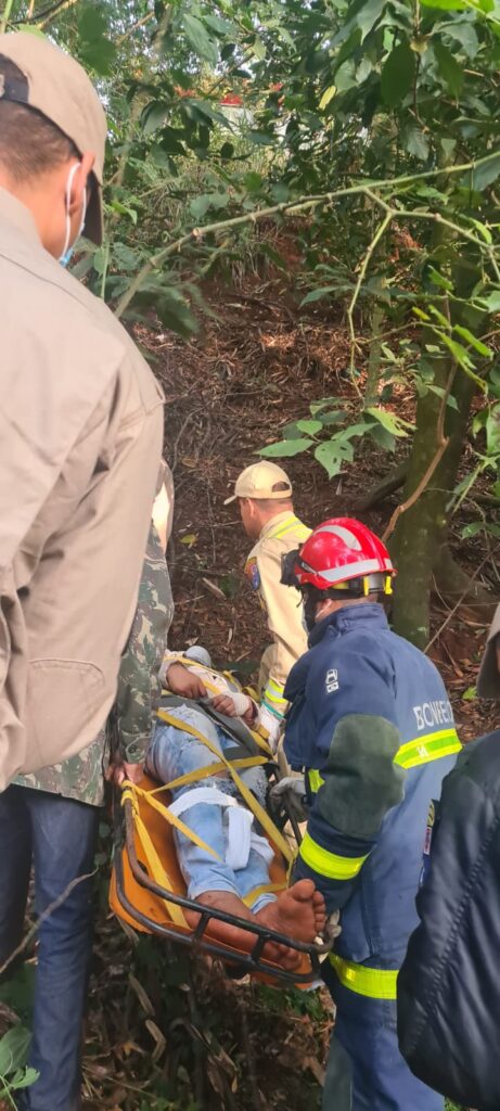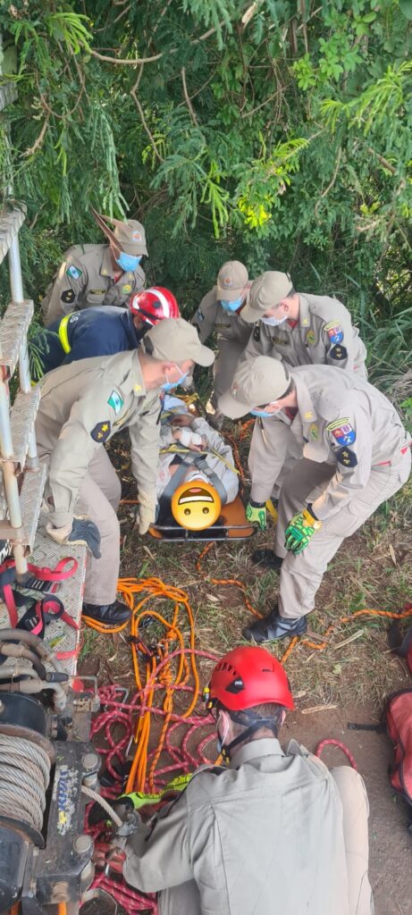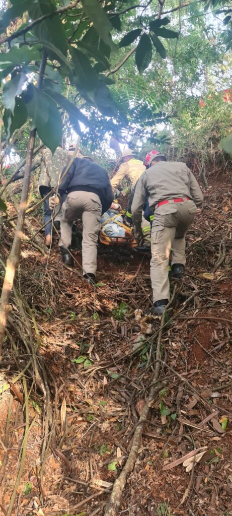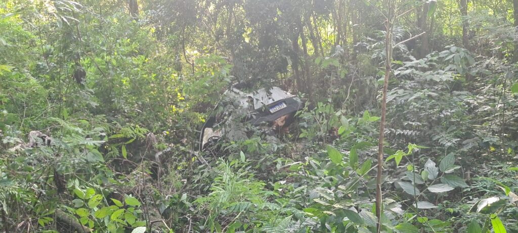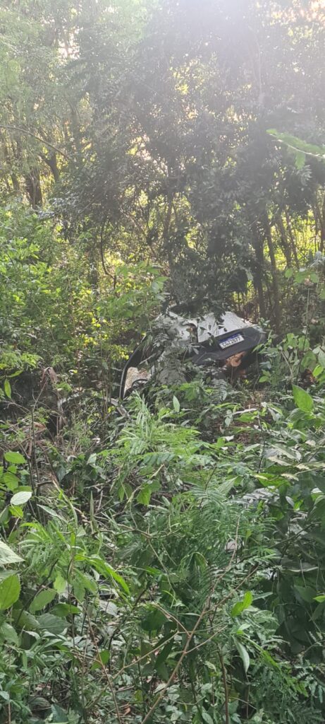 O veículo saiu da pista e caiu na ribanceira. O corpo de bombeiros trabalharam no resgate das vítimas.