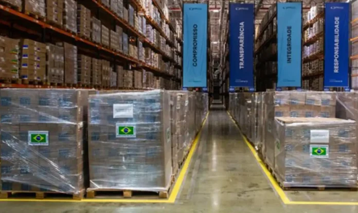 As 100 toneladas das doações ficarão armazenadas no Centro de Distribuição de Insumos e Medicamentos do Ministério da Saúde, localizado em Guarulhos (SP), até serem totalmente despachadas.