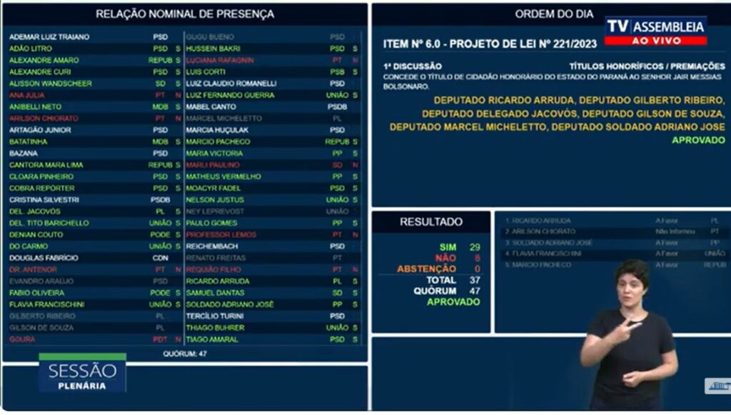 InícioPARANÁAprovado título de Cidadão Honorário do Estado do Paraná ao ex-presidente Jair...
