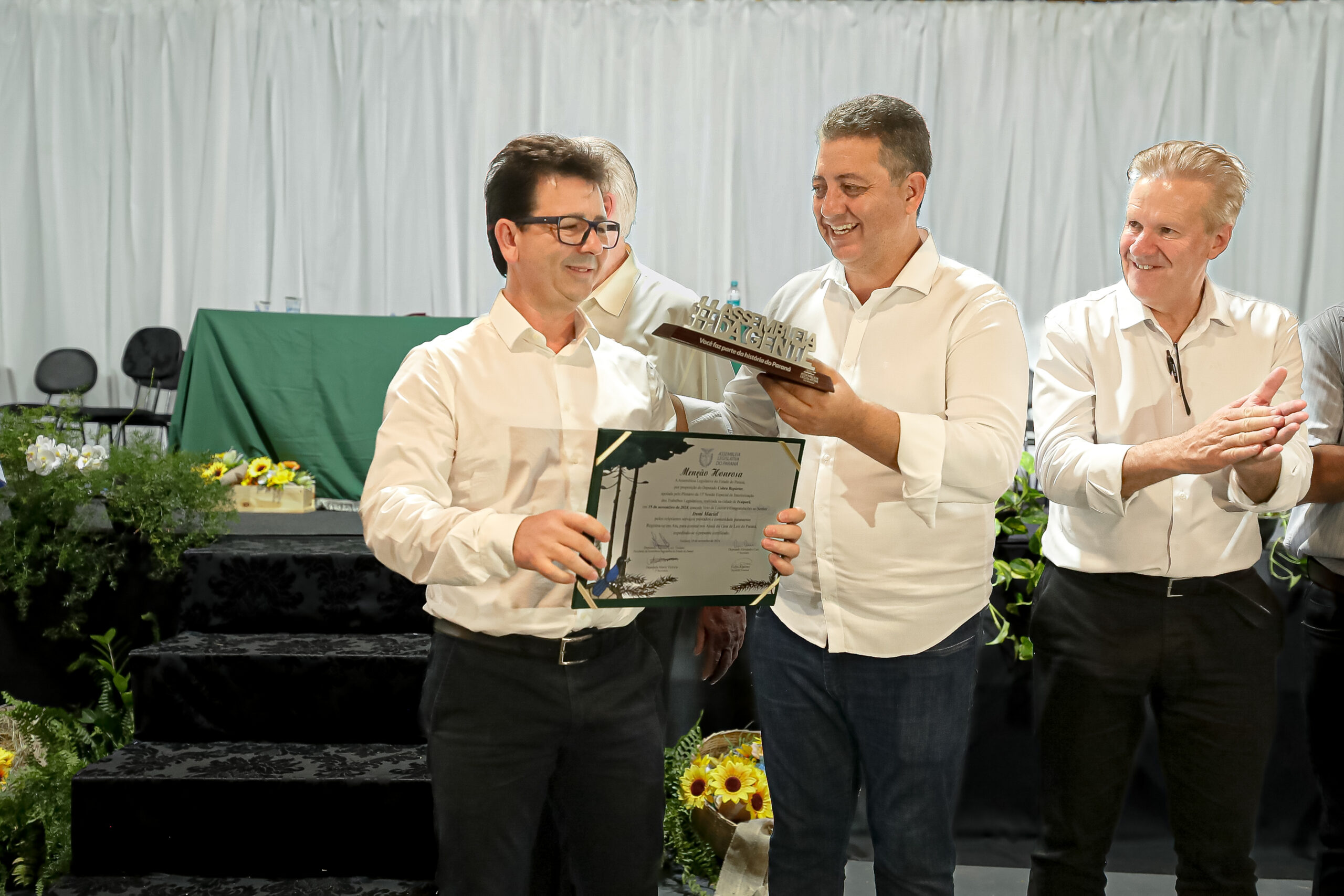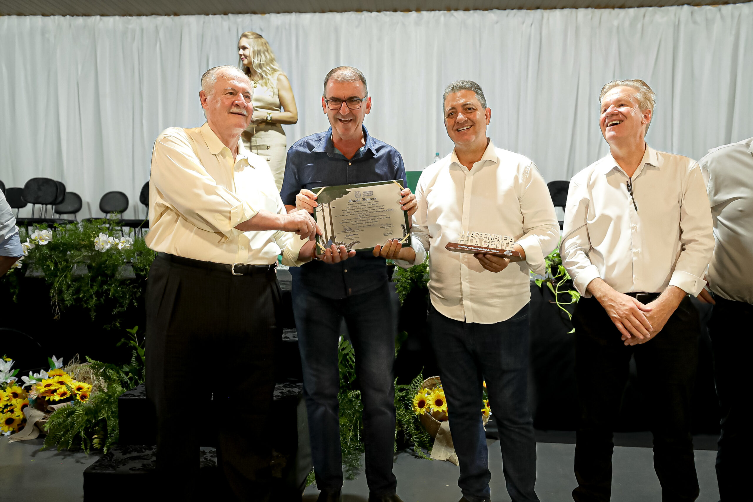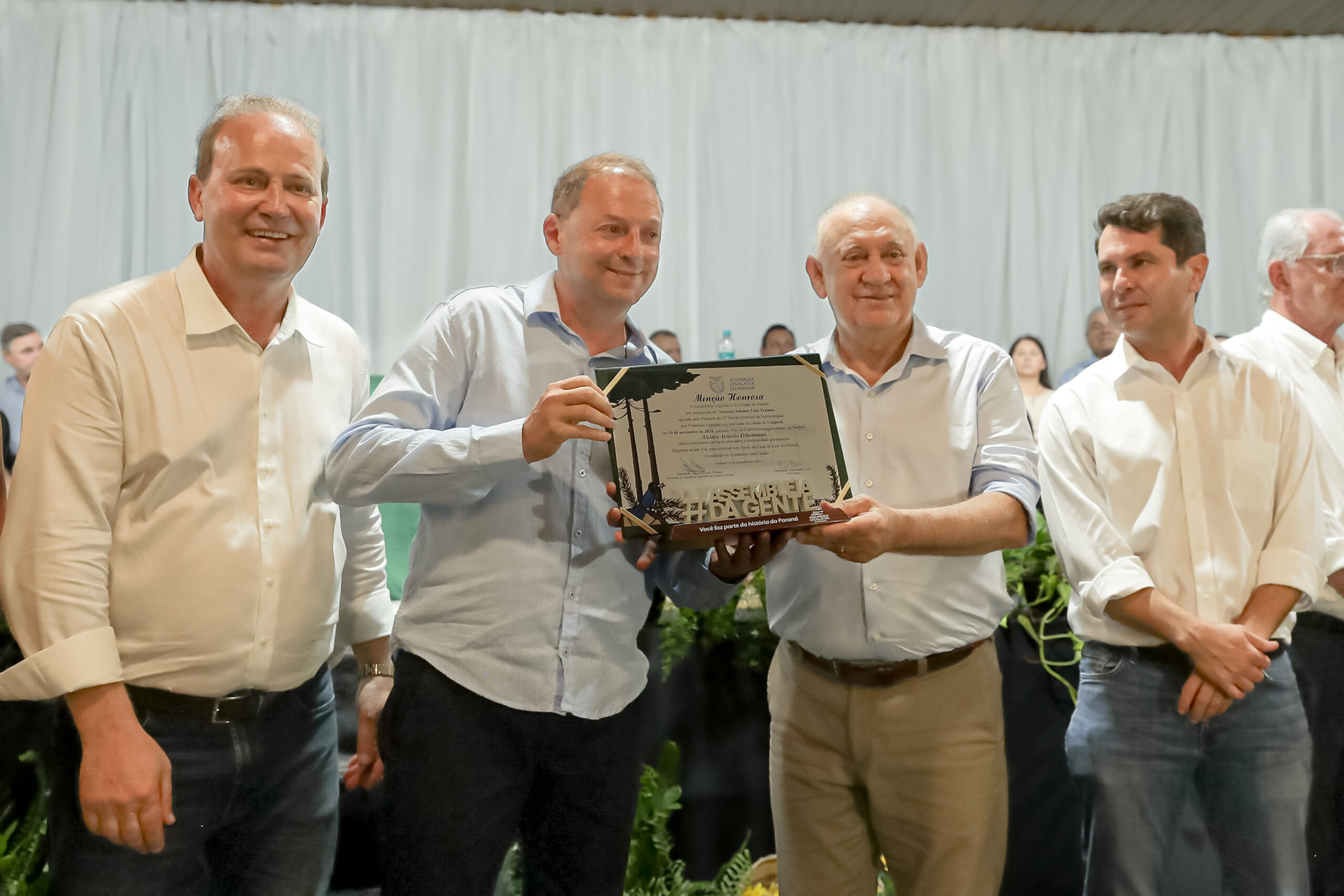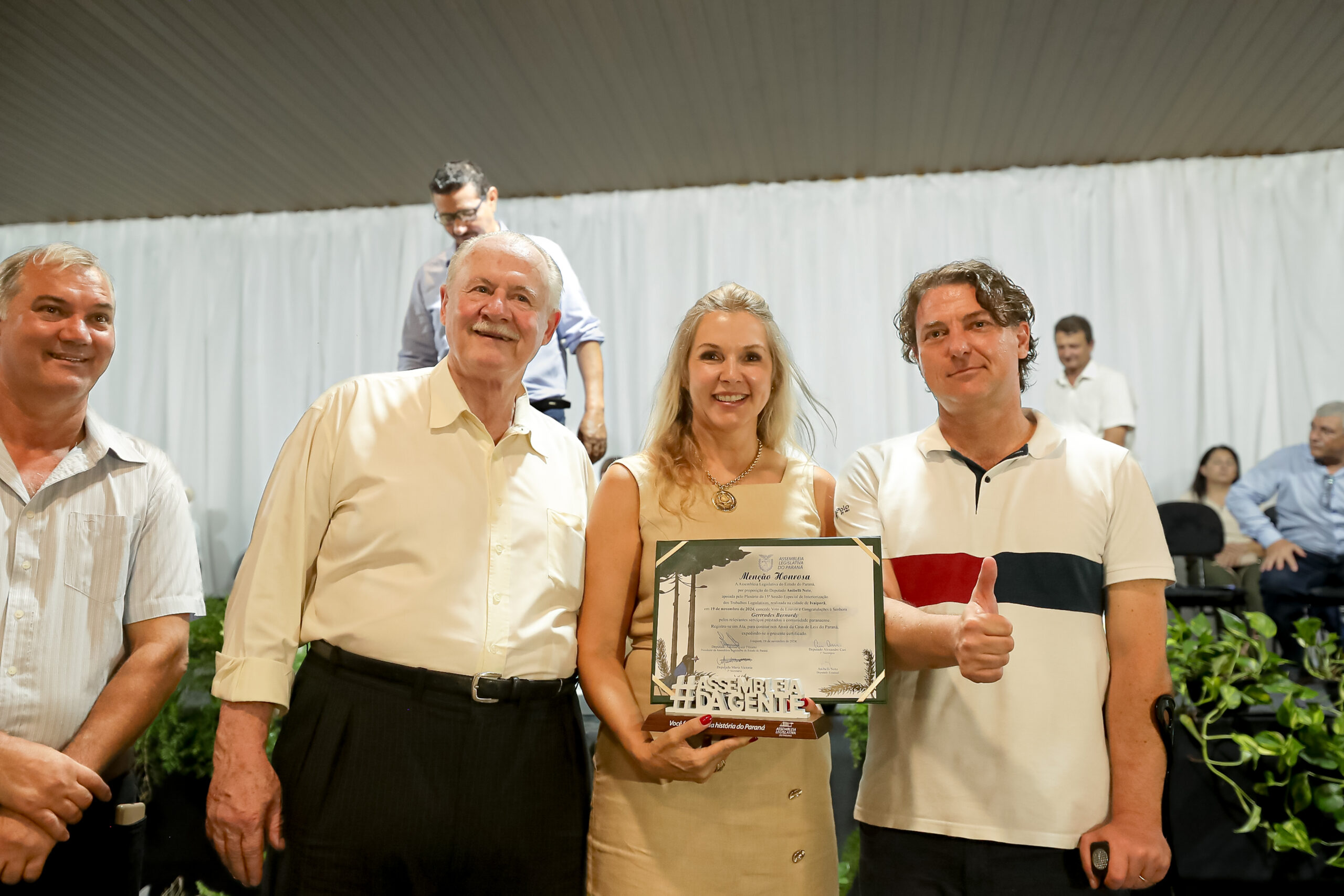 O deputado Luis Corti (PSB) homenageou o agricultor Adolfo Stipp, o médico veterinário Antônio Viespa, o empresário Bernardo Blasczyk, e a secretária de Saúde de Ivaporã, Cristiane Martins.