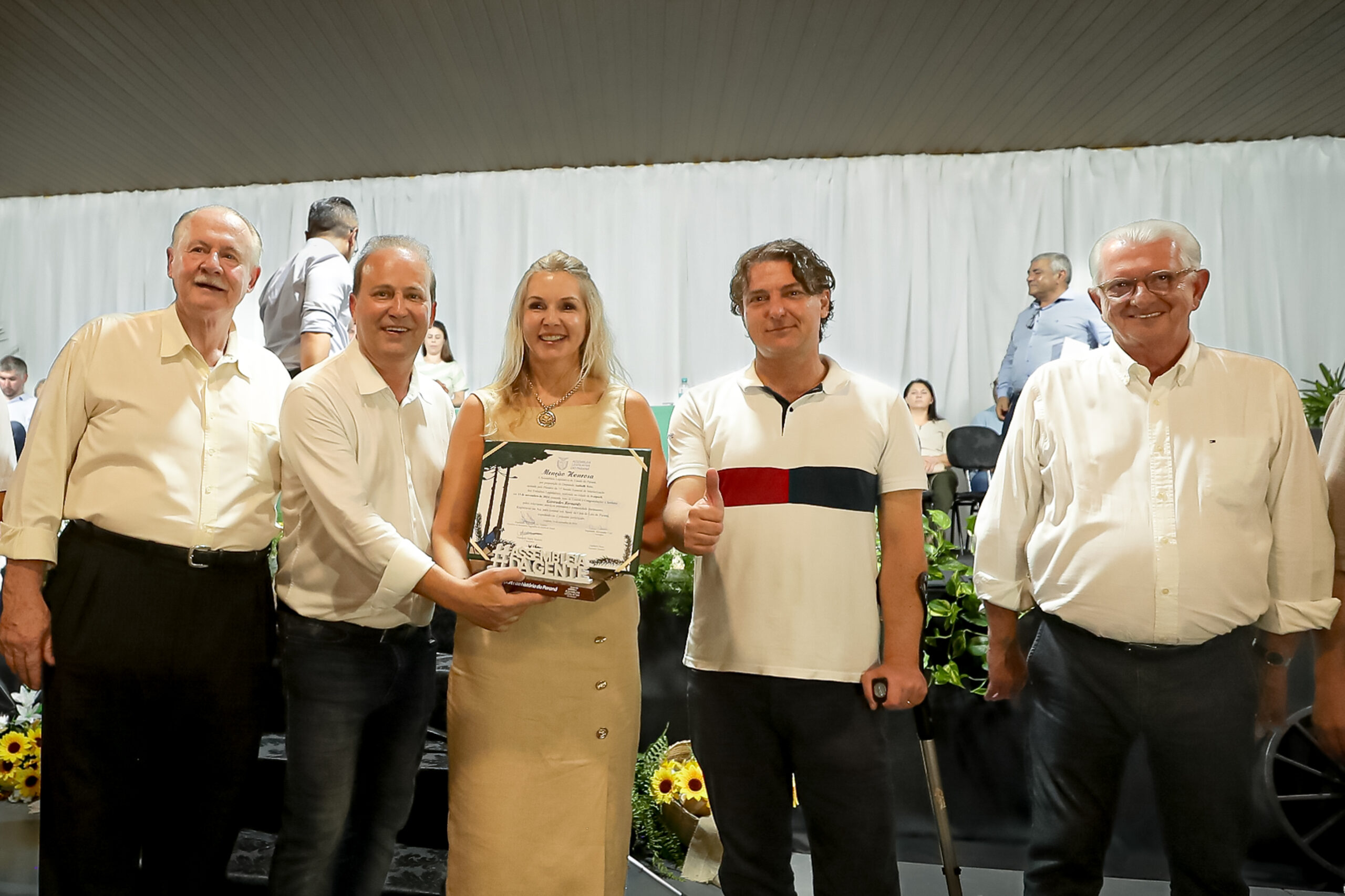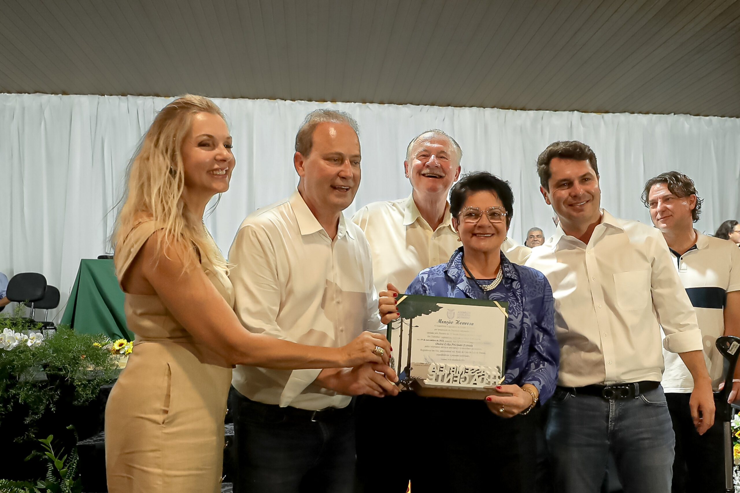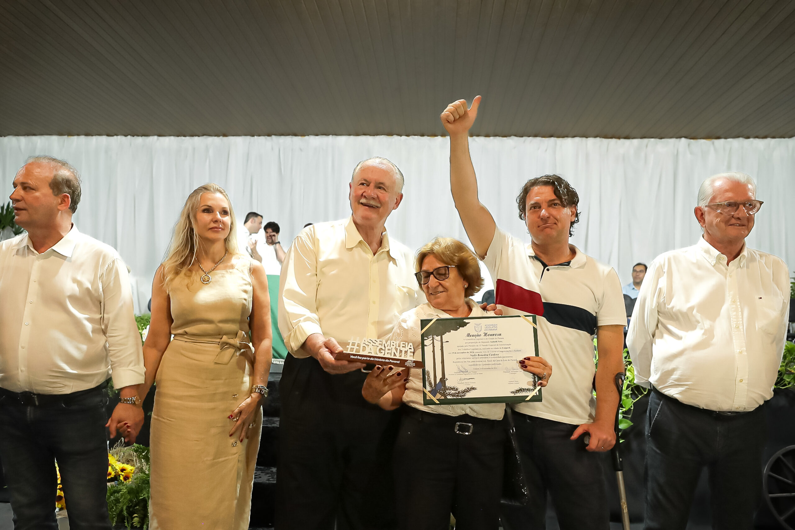 Durante a solenidade, o presidente da Assembleia, deputado Ademar Traiano, homenageou o produtor rural Adir Salla, o empresário Alcides Antonio Olbermann, Carmen Broggi Gil, o agricultor e presidente do Sindicato dos Trabalhadores Rurais Donizete Santos Pires, o médico Adail Bolivar Rother Junior, a presidente da APAE da cidade, Euzélia Lopes, o empresário do setor educacional Fábio Cesar da Costa e a secretária de Assistência Social, Ione de Albuquerque Muchiuti.