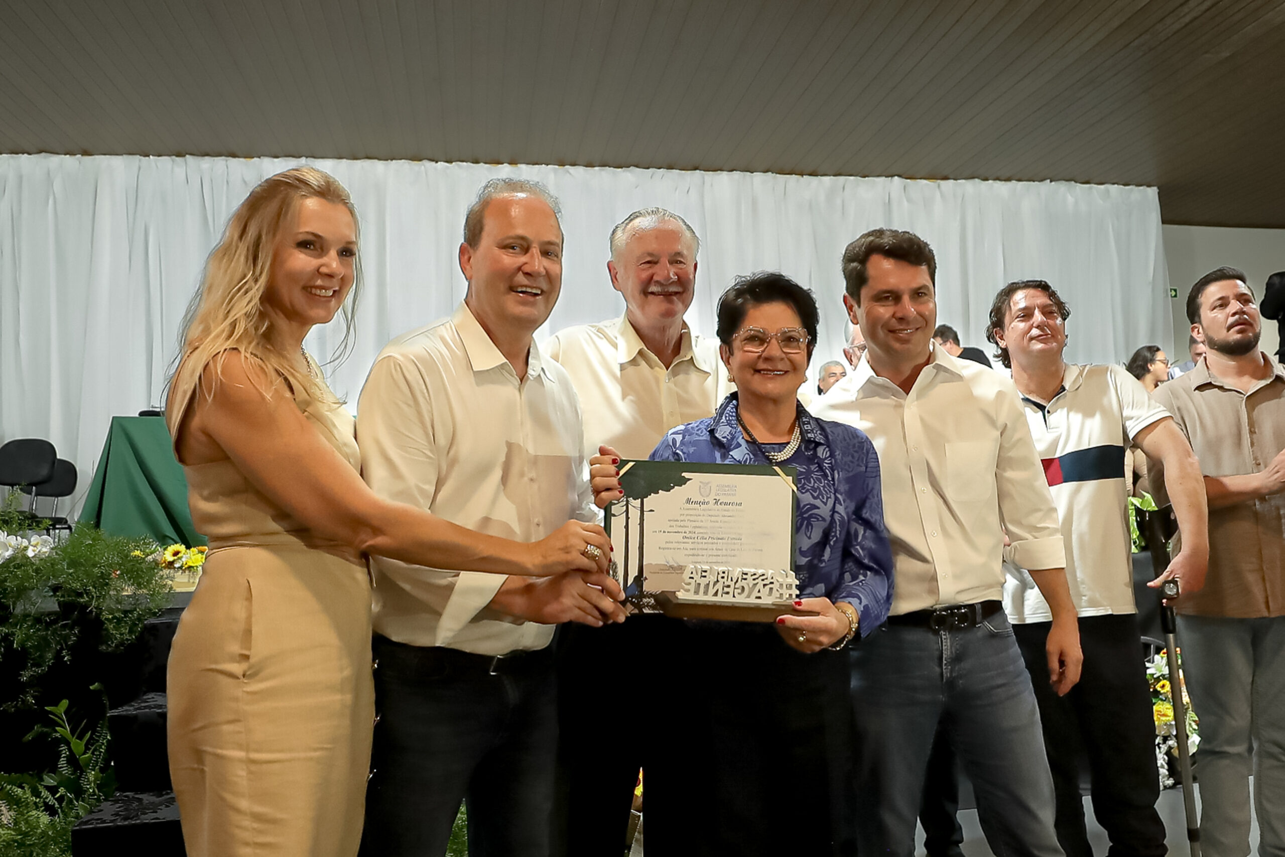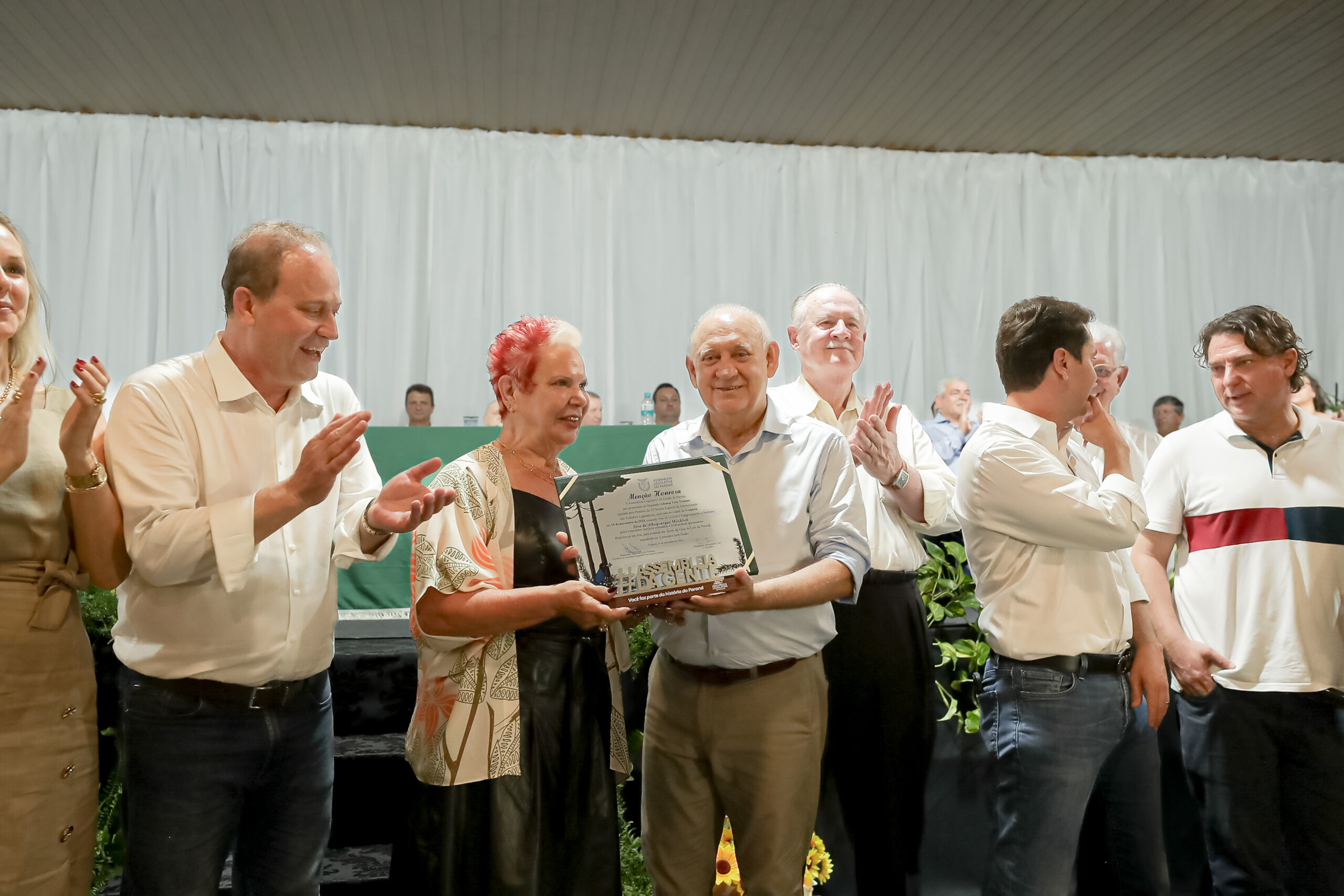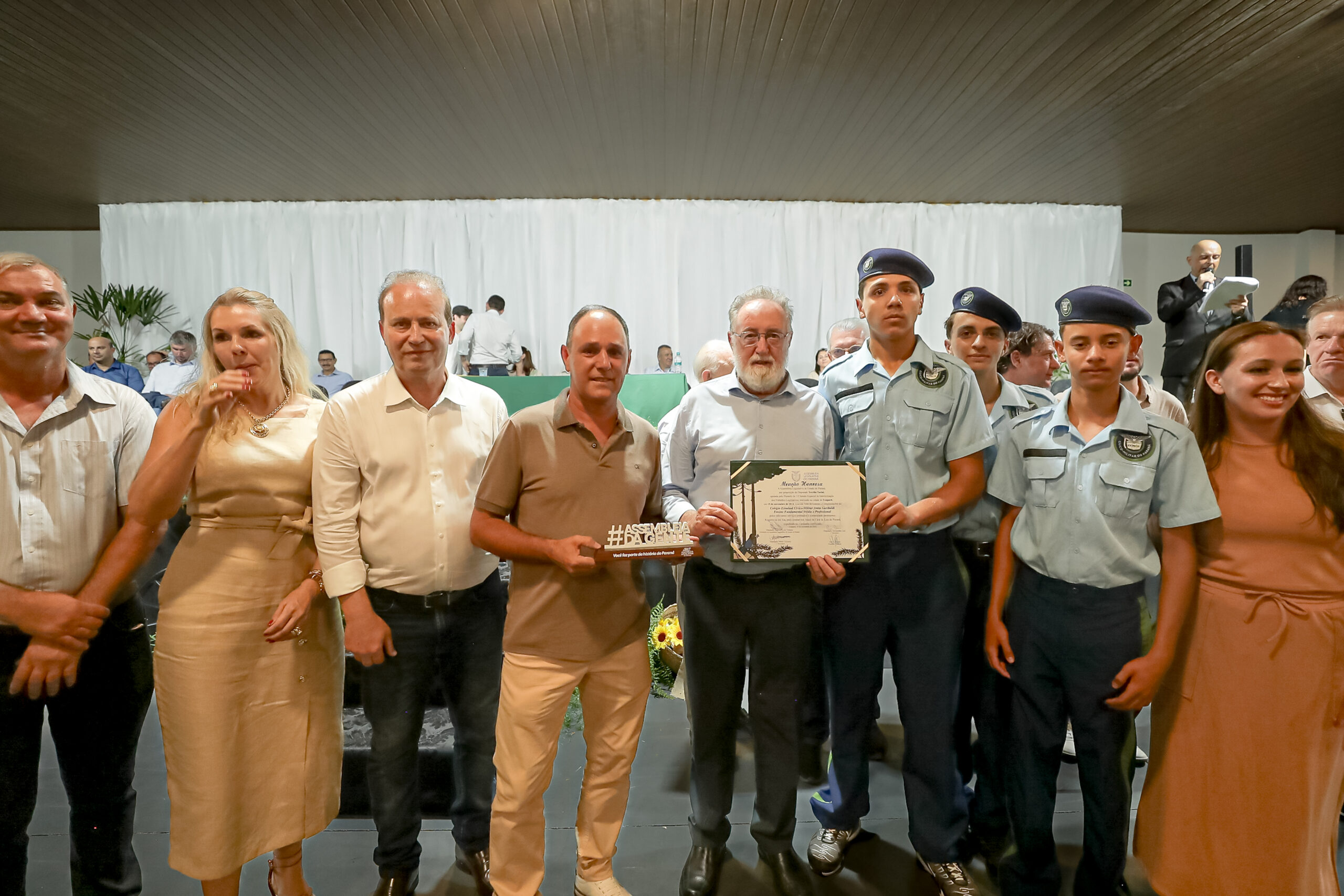 Durante a solenidade, o presidente da Assembleia, deputado Ademar Traiano, homenageou o produtor rural Adir Salla, o empresário Alcides Antonio Olbermann, Carmen Broggi Gil, o agricultor e presidente do Sindicato dos Trabalhadores Rurais Donizete Santos Pires, o médico Adail Bolivar Rother Junior, a presidente da APAE da cidade, Euzélia Lopes, o empresário do setor educacional Fábio Cesar da Costa e a secretária de Assistência Social, Ione de Albuquerque Muchiuti.