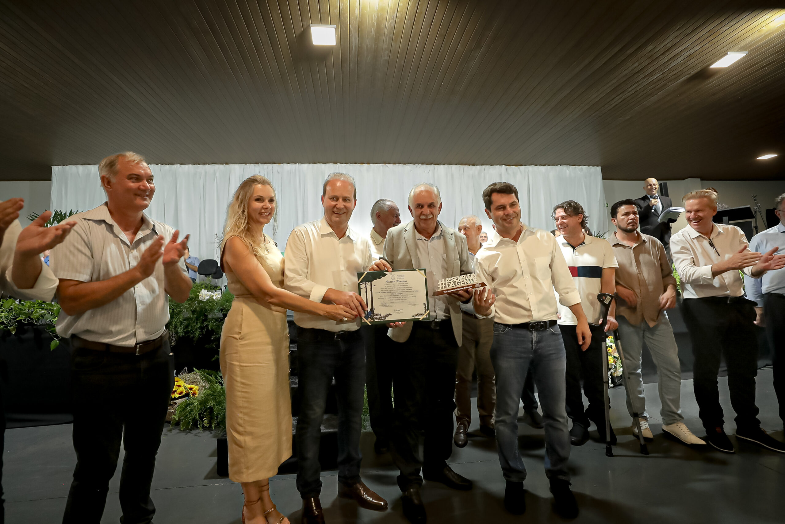 O deputado Nelson Justus (União) prestou seu reconhecimento a representantes da classe política da região, como o empresário e vereador de Paulo Lopes, Aguinaldo Rodrigues; o professor e vereador de Pitanga, Mauro dos Santos; o ex-prefeito de Jardim Alegre, Mauro Oriani; o vereador mais votado de Pitanga em 2024, Rubens Schaff Junior; e o vereador de Nova Tebas, Vanderley Borgert.