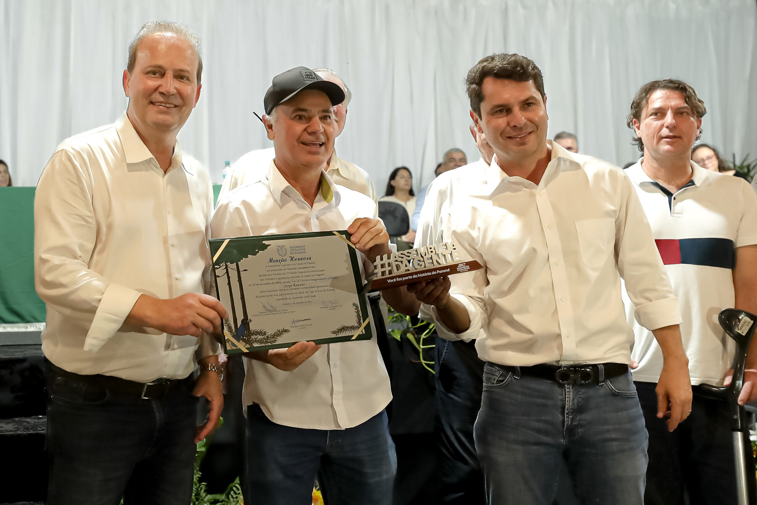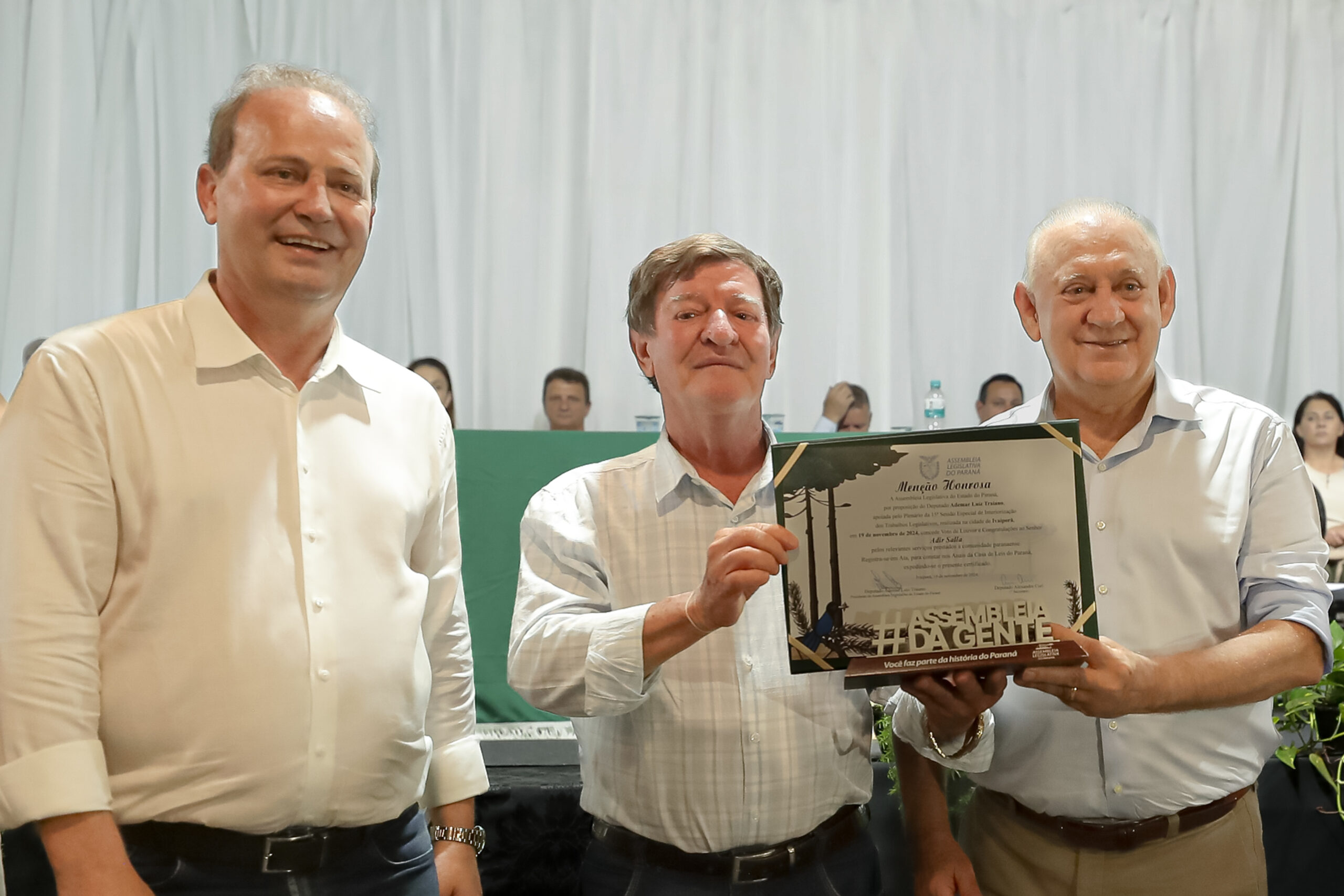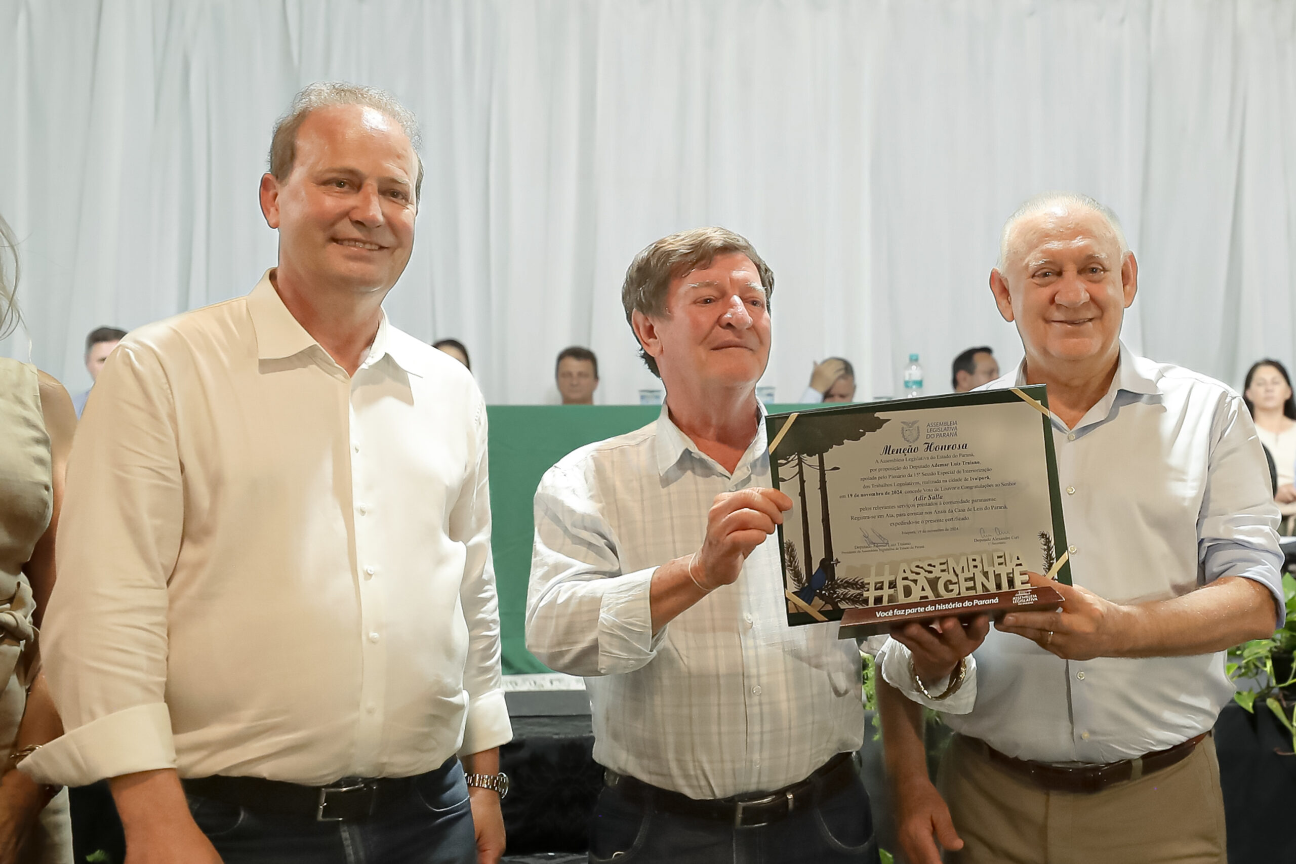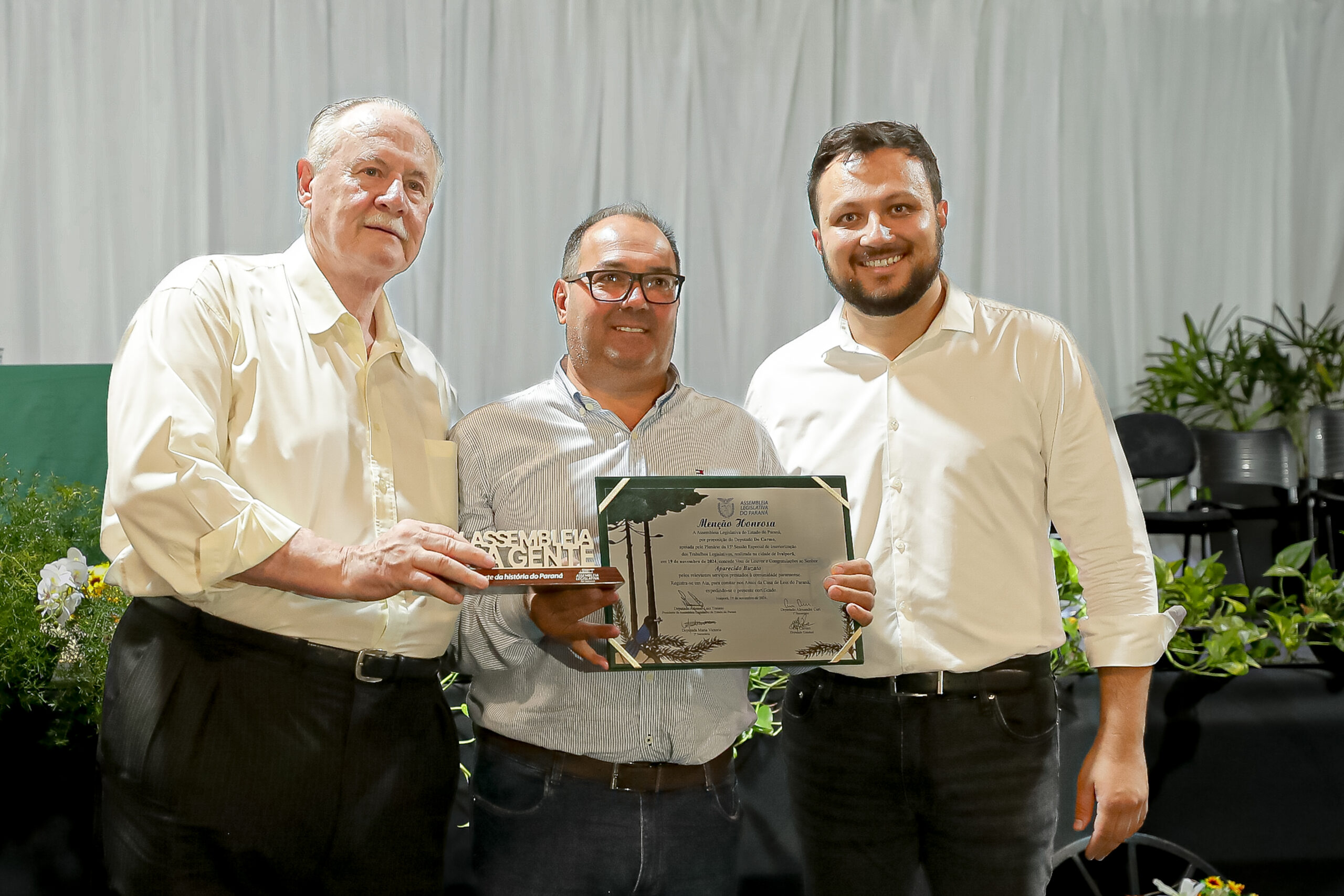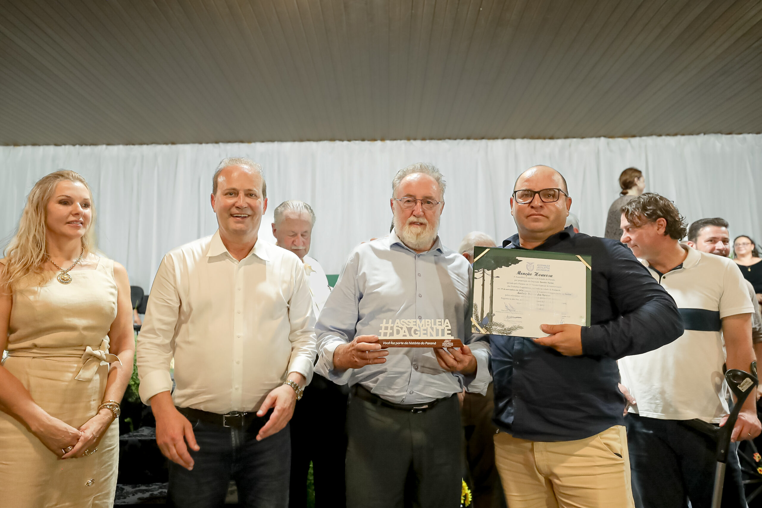 Os homenageados do deputado Tercilio Turini (MDB) foram o empresário Antônio Marcos dos Santos; o também empresário Laércio Pavan; o médico Maurício Mazieiro Clozeta; o agropecuarista e ex-prefeito de Jardim Alegre, Luiz Batista Messias; e também o Colégio Estadual Cívico-Militar Anita Garibaldi, de Ensino Fundamental Médio e Profissional, que conquistou a melhor nota no Ideb em 2024 no Paraná.