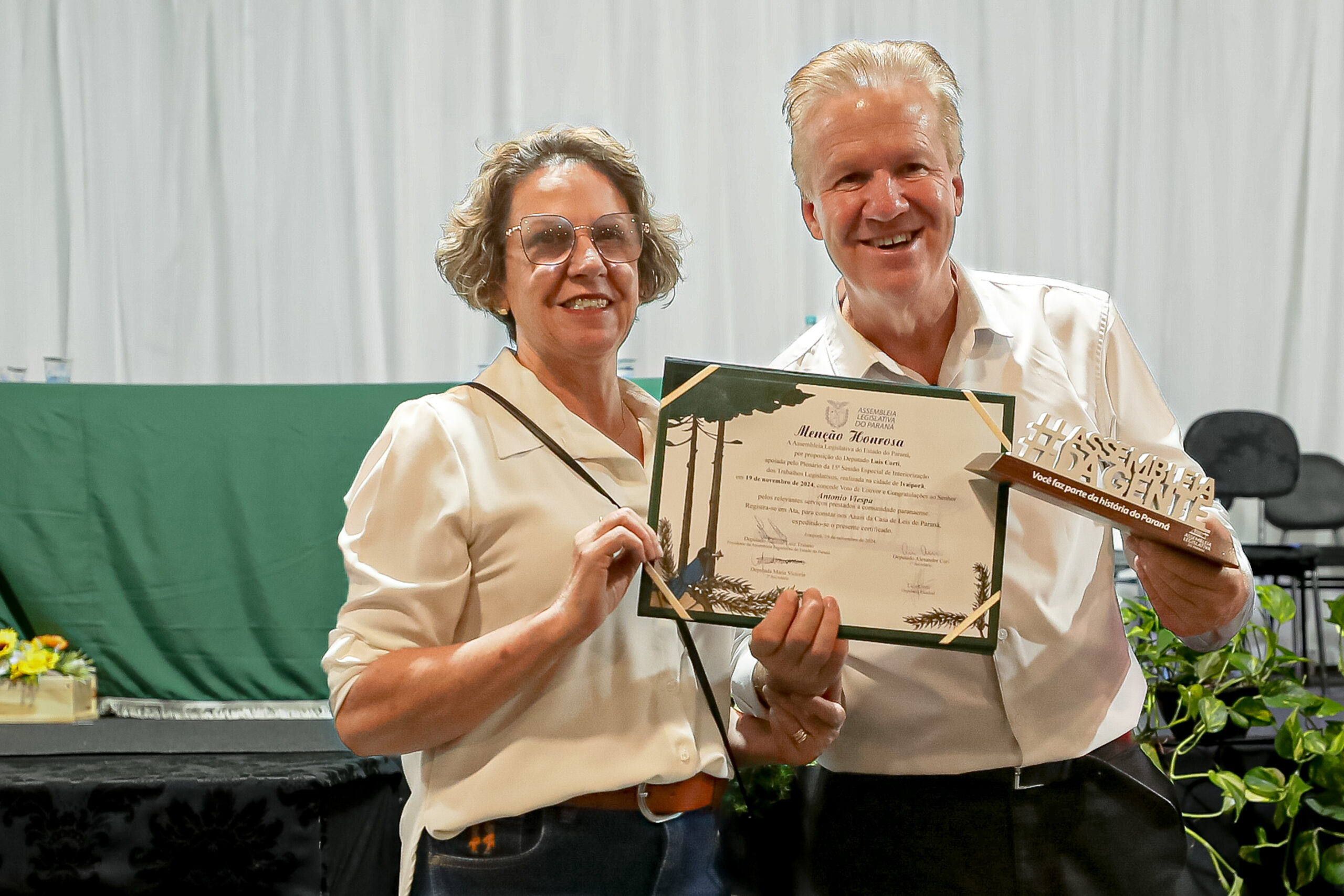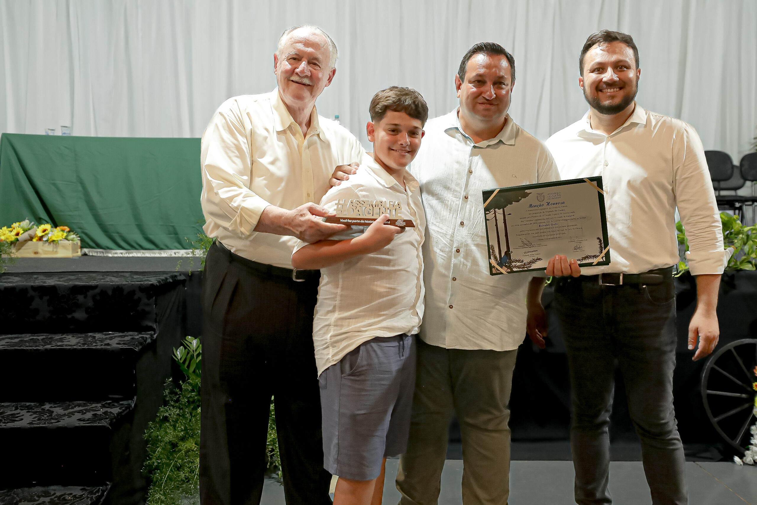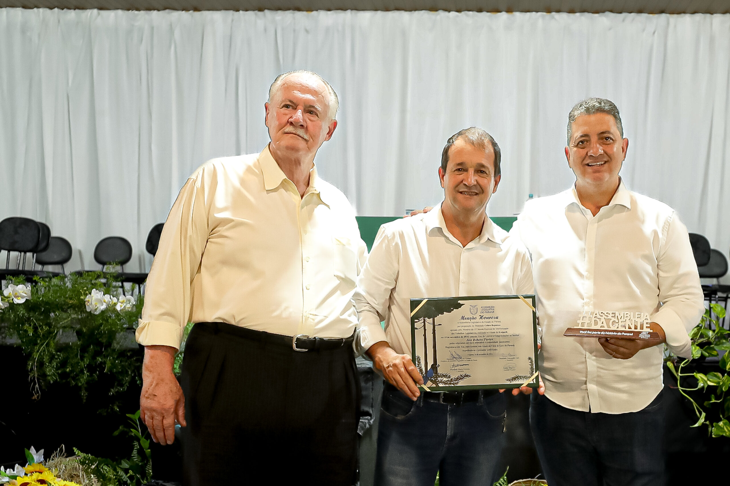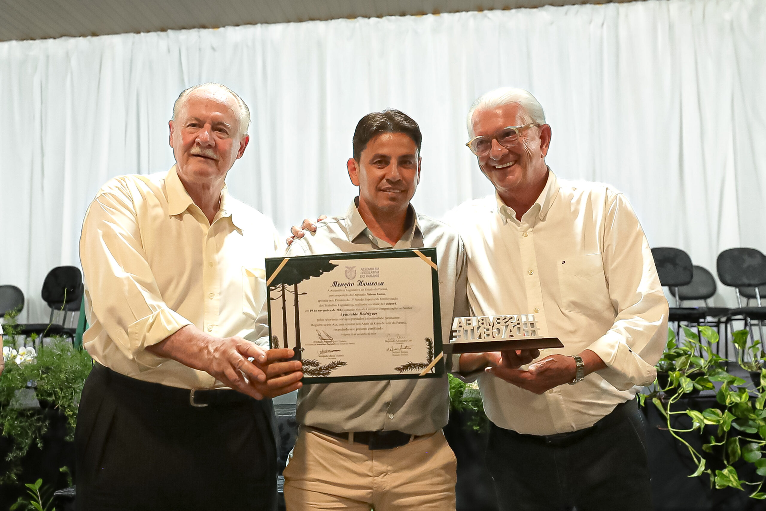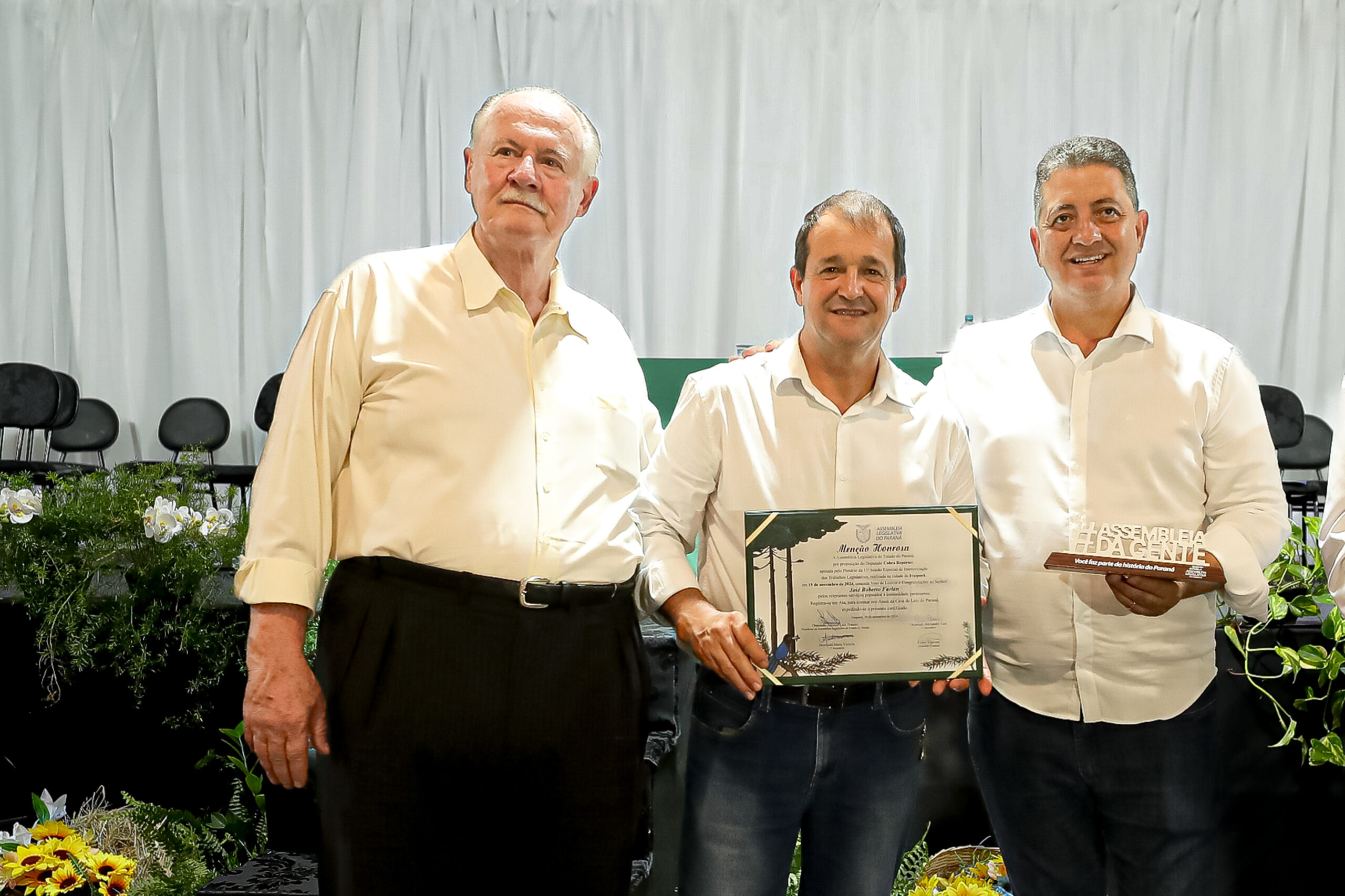 Os homenageados do deputado Tercilio Turini (MDB) foram o empresário Antônio Marcos dos Santos; o também empresário Laércio Pavan; o médico Maurício Mazieiro Clozeta; o agropecuarista e ex-prefeito de Jardim Alegre, Luiz Batista Messias; e também o Colégio Estadual Cívico-Militar Anita Garibaldi, de Ensino Fundamental Médio e Profissional, que conquistou a melhor nota no Ideb em 2024 no Paraná.