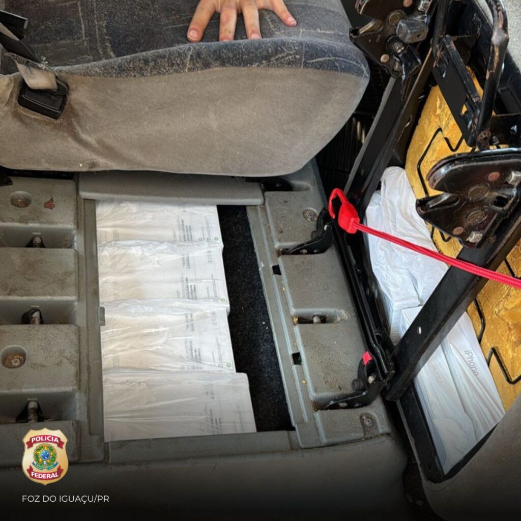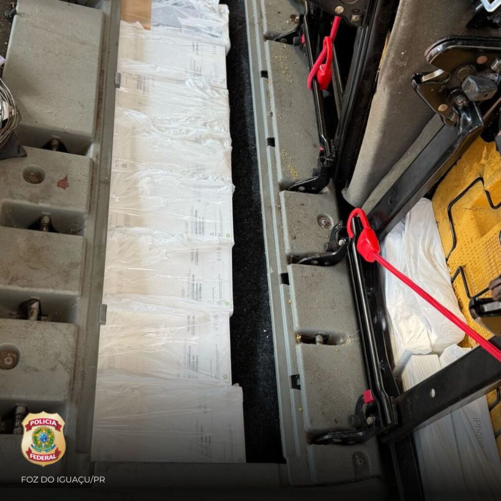 Após uma inspeção minuciosa no interior do veículo, os policiais encontraram cerca de 235 aparelhos celulares de alto valor, escondidos em compartimentos da estrutura do carro e nas poltronas. A carga total apreendida foi avaliada em aproximadamente R$ 692 mil.