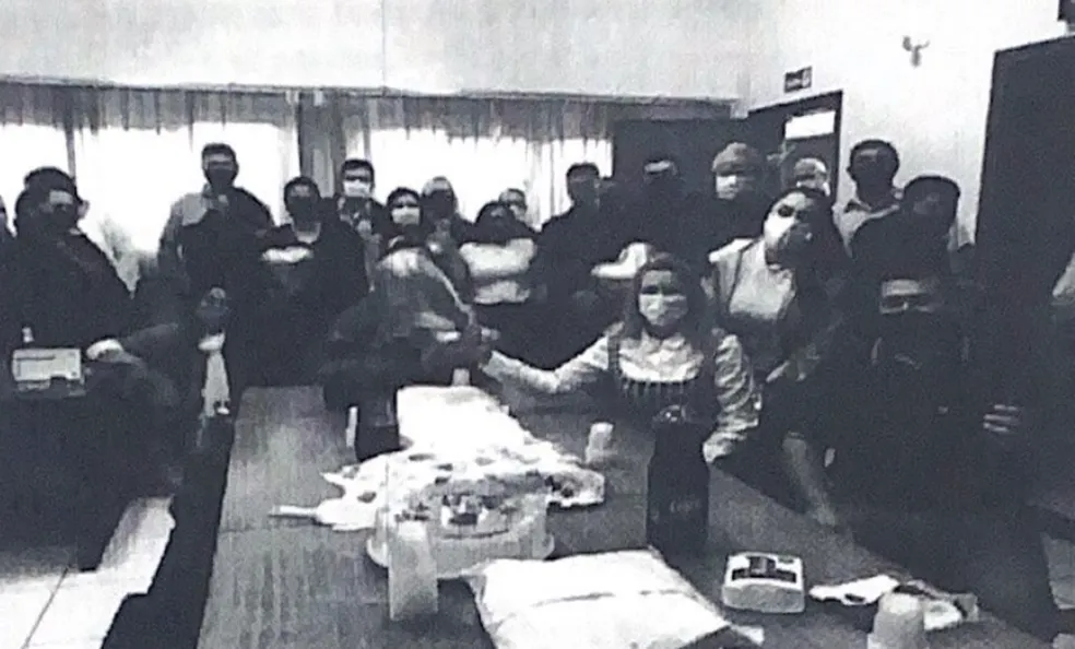 No documento de instauração da Comissão Processante foi anexada uma foto onde a vereadora aparece com servidores reunidos em torno de uma mesa com bolo e salgadinhos. Mais de 15 pessoas estão na foto, usando máscara.