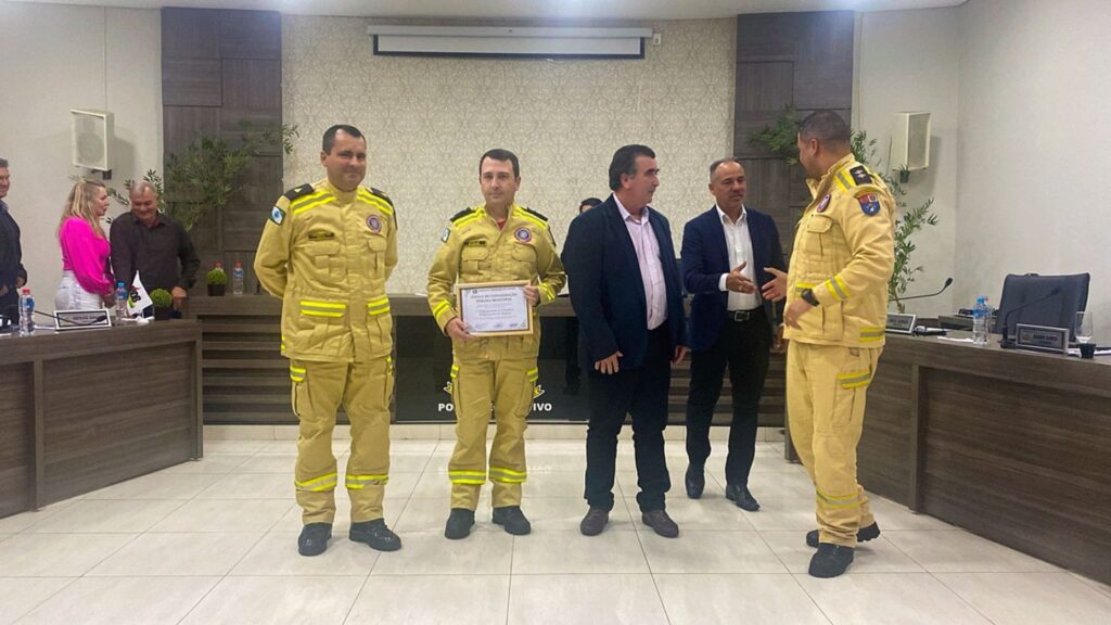 A solenidade contou com a presença do Capitão Rafael Blasques, Tenente Fernando Machado, Subtenente Cleber Trova e demais bombeiros que atuam no município. O vereador Carniato, autor da proposição, destacou a importância do trabalho dos bombeiros para a segurança e bem-estar da população, especialmente em um dia tão simbólico como 2 de julho, Dia Nacional do Bombeiro.