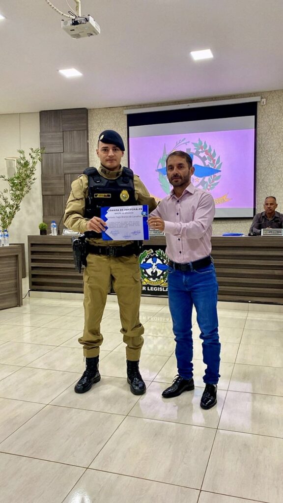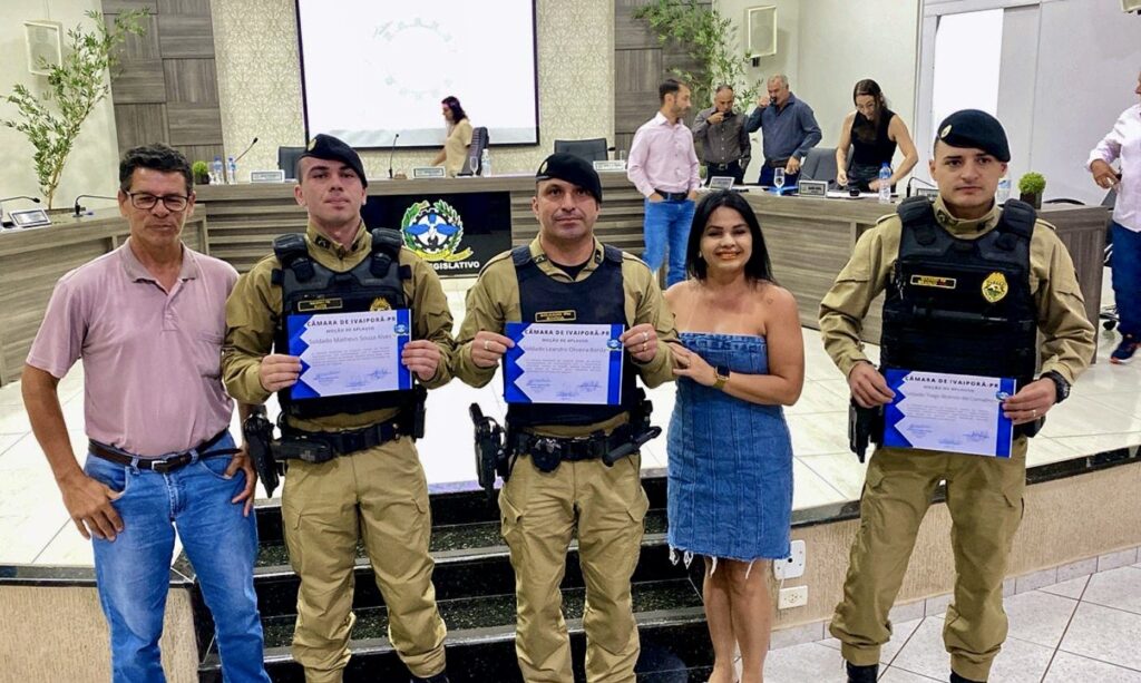 Na última segunda-feira, dia 25 de novembro, a Câmara Municipal de Vereadores de Ivaiporã prestou uma merecida homenagem aos policiais militares, Soldado Matheus Souza Alves, Soldado Leandro Oliveira Borda e Soldado Tiago Branco de Carvalho, com uma moção de aplausos. A proposta foi apresentada pelo vereador Fernando Rodrigues Dorta e aprovada por unanimidade.
