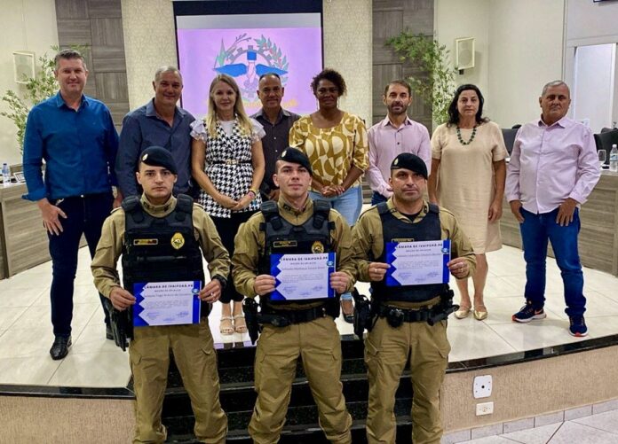 Na última segunda-feira, dia 25 de novembro, a Câmara Municipal de Vereadores de Ivaiporã prestou uma merecida homenagem aos policiais militares, Soldado Matheus Souza Alves, Soldado Leandro Oliveira Borda e Soldado Tiago Branco de Carvalho, com uma moção de aplausos. A proposta foi apresentada pelo vereador Fernando Rodrigues Dorta e aprovada por unanimidade.