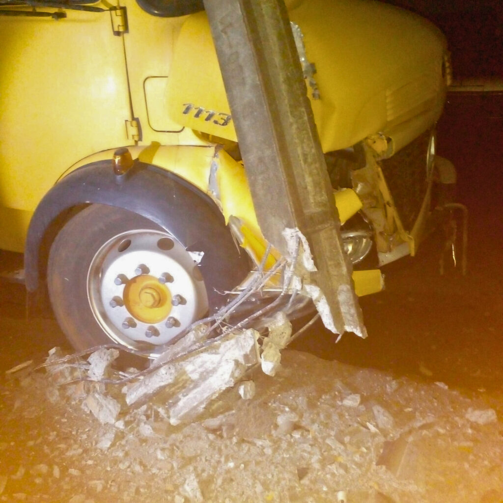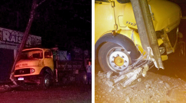 Segundo informações da Polícia Militar, um caminhão Mercedes Benz/L 1113 colidiu com um poste de energia elétrica, o quebrando e o deixando escorado no veículo. A equipe do Corpo de Bombeiros e funcionários da empresa Terra Vermelha, responsável pelos serviços da Copel, estiveram no local para atender a ocorrência.