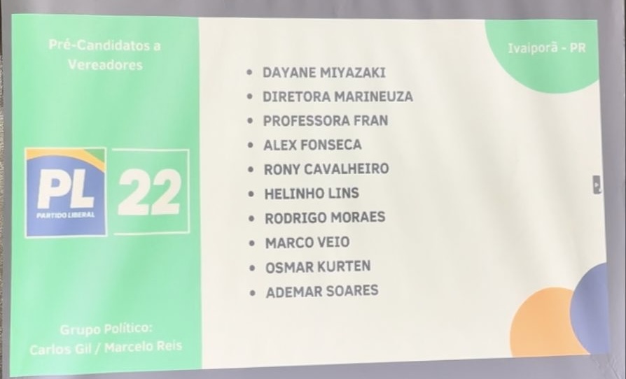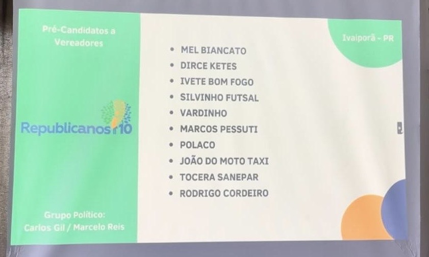 Por fim, o prefeito apresentou os pré-candidatos a vereadores e vereadoras das legendas PSD, MDB, Republicanos e PL, que, segundo ele, formam “um time forte e renovado que garantirá ao prefeito a maioria na câmara”.