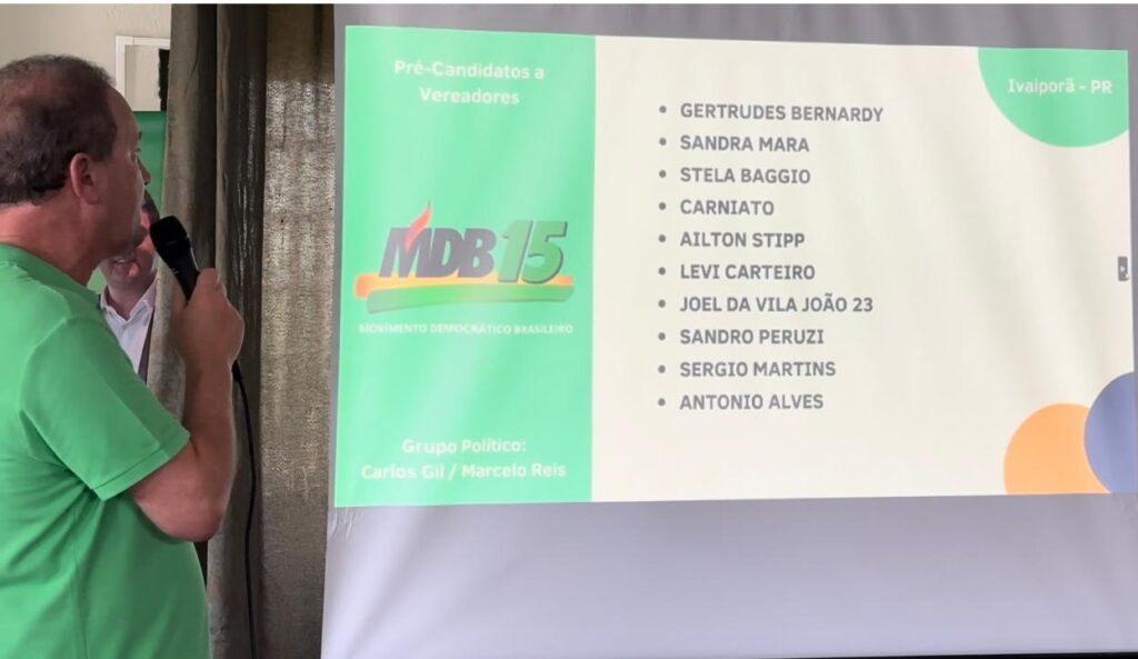Uma grande reunião na Chácara do 21 neste sábado (16) marcou o lançamento da pré-candidatura a reeleição de Carlos Gil (PSD) e Marcelo Reis (MDB) a prefeito e vice-prefeito de Ivaiporã, respectivamente. A chapa também apresentou os pré-candidatos a vereadores pelos partidos PSD, MDB, PL e Republicanos.