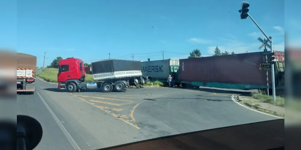 Um caminhão atingido por um trem na entrada da Vila Borato, nas margens da avenida Souza Naves em Ponta Grossa, ficou ‘partido ao meio’ após a colisão registrada na manhã desta quarta-feira (3). Imagens compartilhadas com o Portal aRede mostram que a composição que circulava pela linha férrea atingiu a carreta e deixou parte da carga do lado oposto ao que ficou a cabine; apesar do impacto da batida, ninguém se feriu.