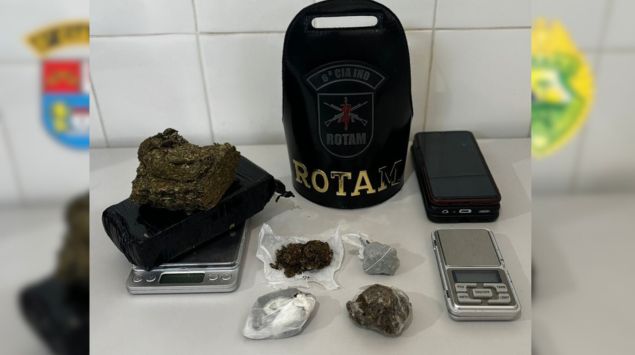 A ocorrência teve início com a prisão de um casal. Um dos homens havia tentado fugir inicialmente, mas foi localizado pela equipe RPA escondido na casa de um terceiro indivíduo. Este, além de ser preso por favorecimento real, acabou sendo constatado como parte do esquema de tráfico. Em sua residência, foi encontrada uma quantidade de maconha e uma balança de precisão, que, segundo informações, estaria guardada a mando do fugitivo.