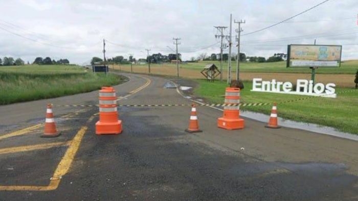 A PR-540, em Entre Rios, distrito de Guarapuava, está com bloqueio total do km 0 ao km 6, devido ao rompimento de bueiro metálico e danos ao pavimento. O acesso ao distrito está limitado à colônia Socorro, com o retorno sendo realizado pela colônia Jordãozinho.