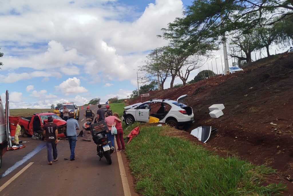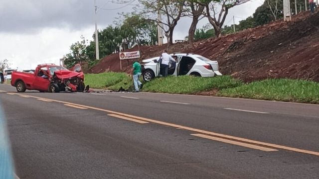 O acidente se deu por uma colisão frontal entre dois veículos emplacados em Ivaiporã: um Chevrolet Prisma branco e uma Saveiro vermelha.