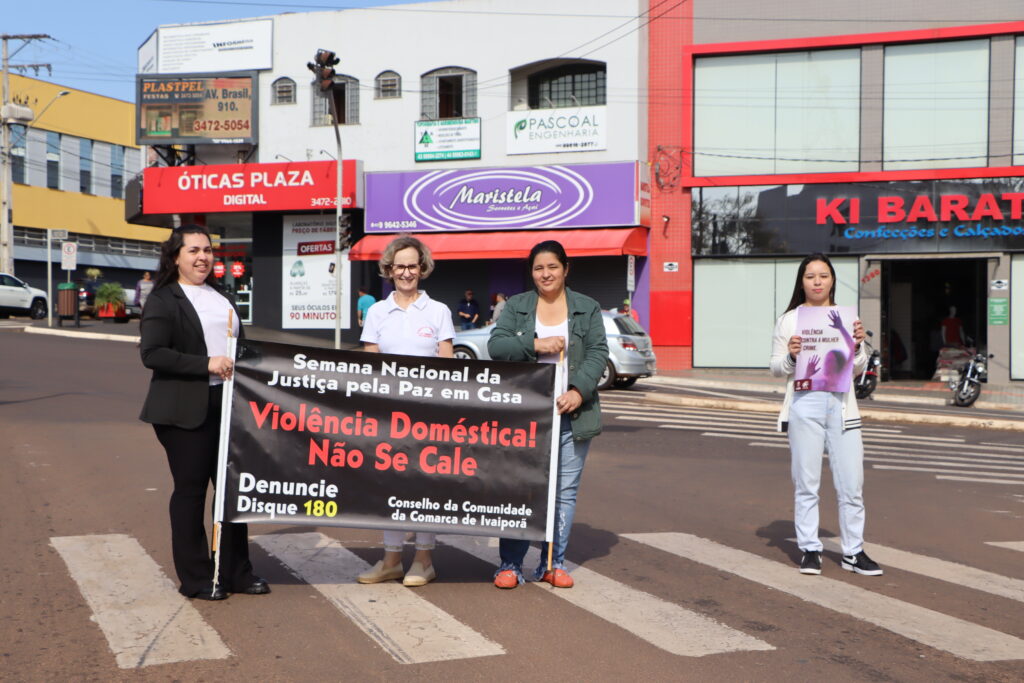 Em um ato público realizado na Praça Manoel Teodoro da Rocha, a comunidade de Ivaiporã uniu-se em apoio à campanha Justiça Pela Paz em Casa. Esta campanha, promovida pelo Conselho Nacional de Justiça (CNJ) em colaboração com os tribunais de Justiça estaduais, tem como objetivo fortalecer a Lei Maria da Penha (Lei 11.340/2006) e dedicar esforços para agilizar a tramitação dos casos de violência de gênero.