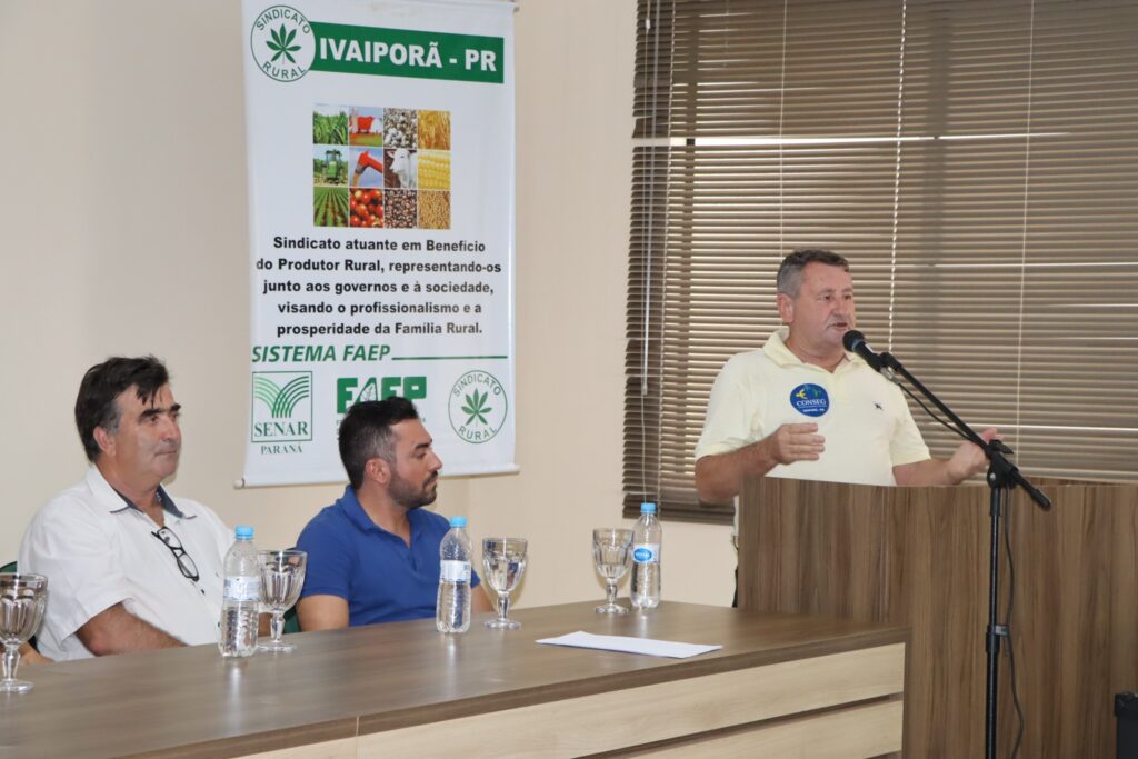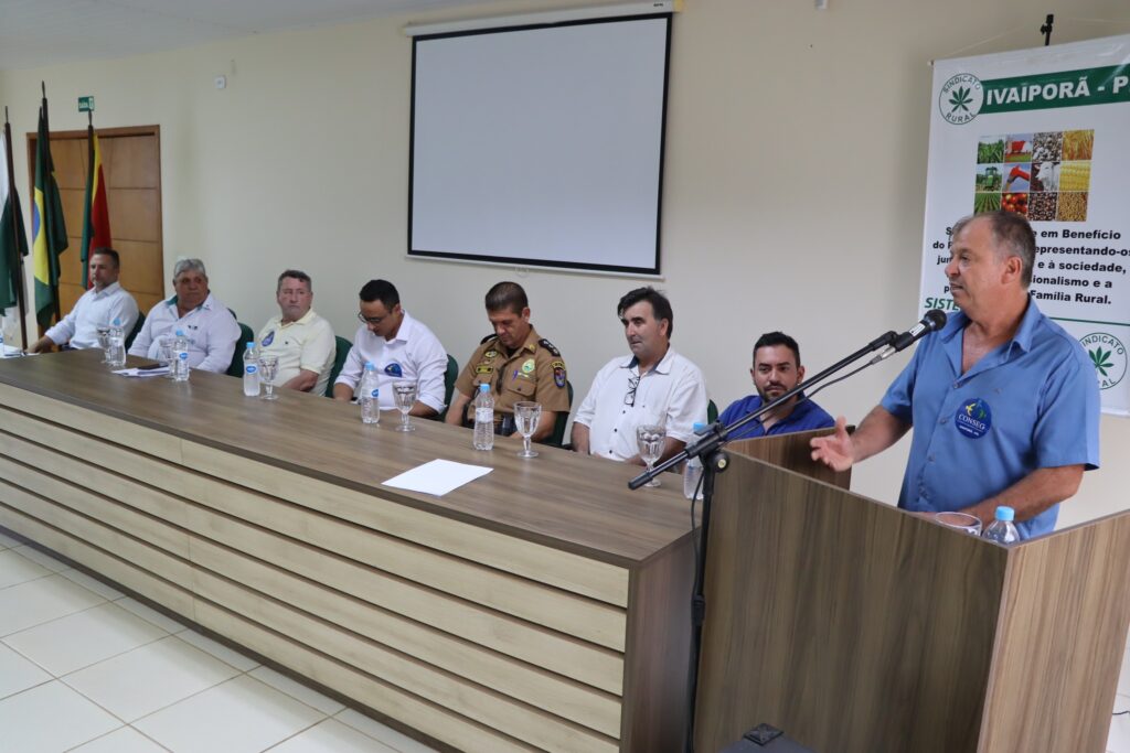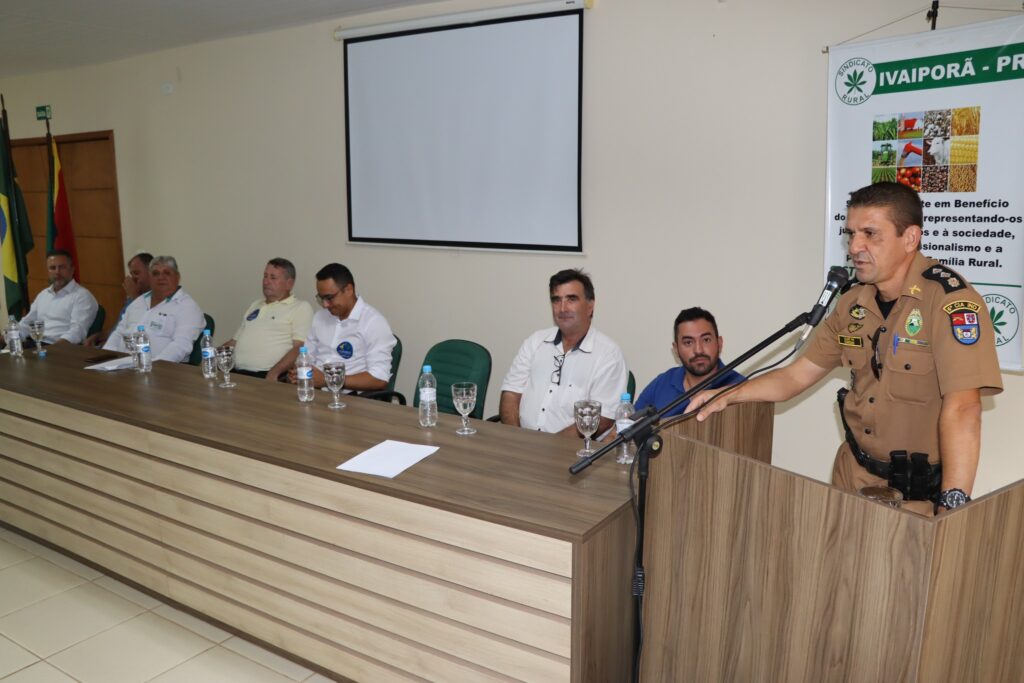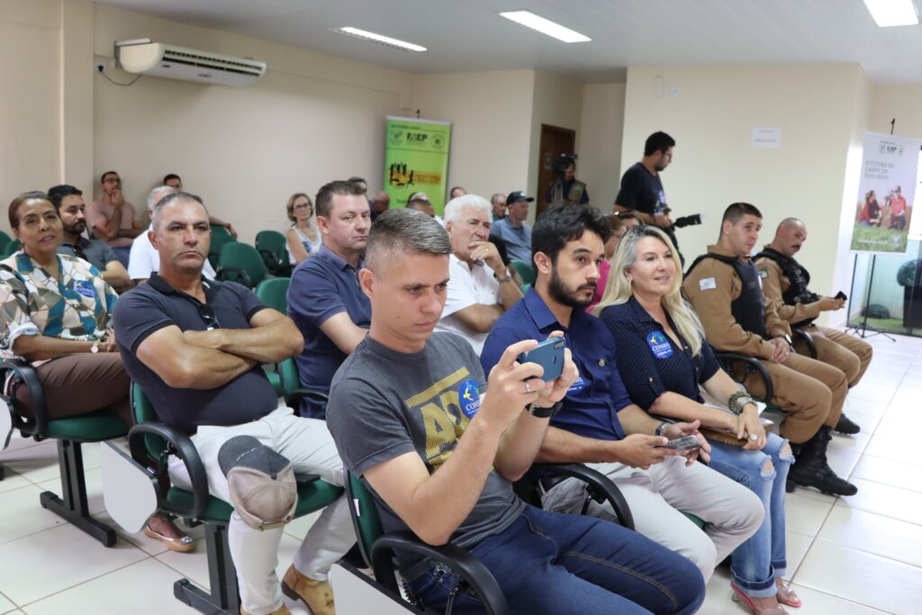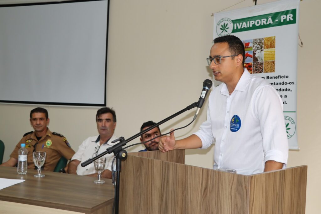 A cerimônia, conduzida pelo secretário municipal de Indústria e Comércio, Alex Fonseca, foi realizada no Sindicato Patronal Rural de Ivaiporã e contou com a participação do presidente do Conseg, Jair Burato – e demais membros, comandante da 6ª Companhia Independente de Polícia Militar, major Marciano Corsini, presidentes do Sindicato Patronal Rural e do Sindicato dos Trabalhadores Rurais, Marco Esquiçato e Donizete Pires, delegado da Polícia Civil de Ivaiporã, Erlon Ribeiro da Silva, presidente da Subseção da OAB de Ivaiporã, Valdir de Freitas Júnior, vereador José Maurino Carniato, e do secretário municipal de Obras, Bruno Montoro, que representou o prefeito em exercício Marcelo Reis.