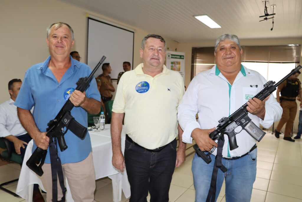 “Agradeço aos membros do Conseg pelo empenho e especialmente aos presidentes Marco Esquiçato e Donizete Pires – e aos produtores rurais pela doação de recursos que foram destinados à compra dos fuzis. Esta união é muito importante para mantermos o município seguro”, declarou Jair Burato informando que as forças de segurança terão mais equipamentos em breve.
