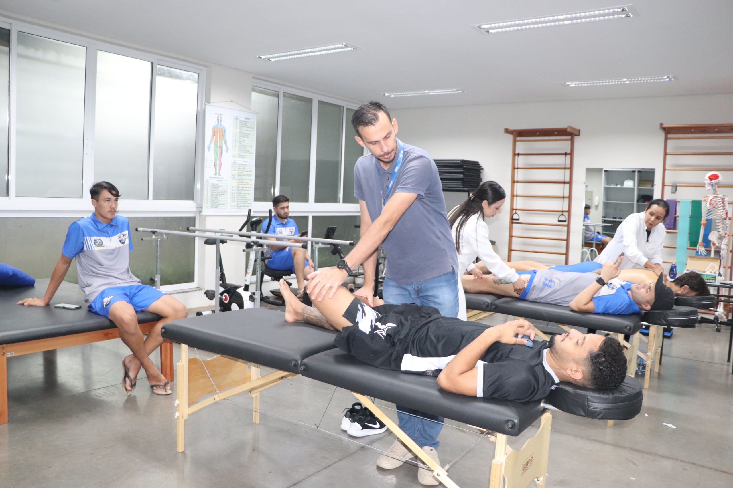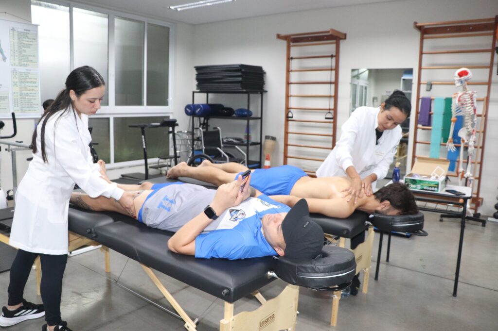 “No dia a dia, as queixas seguem um padrão. As dores são frequentes, principalmente na região lombar, inguinal, joelhos e tornozelos – áreas mais exigidas no Futsal e sujeitas a sobrecarga constante”, informou o coordenador. Durante os atendimentos, os acadêmicos atuam com diferentes abordagens, como liberação miofascial, exercícios cinesioterapêuticos, recursos de eletrotermofototerapia, além de ajustes posturais e biomecânicos. “As intervenções são conduzidas sob supervisão e voltadas tanto à recuperação quanto à prevenção”, lembrou José Brito.