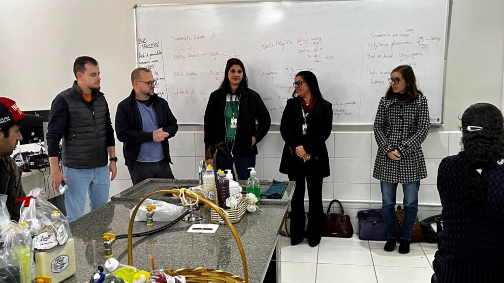 Durante a formação, os alunos aprenderam a produzir sabão em barra e líquido, sabonete glicerinado, detergente, desinfetante, limpa vidros, aromatizantes, sachês perfumados e repelente natural. Foram 9 oficinas práticas, além de atividades complementares como desenvolvimento de rótulos, precificação e estratégias de marketing.