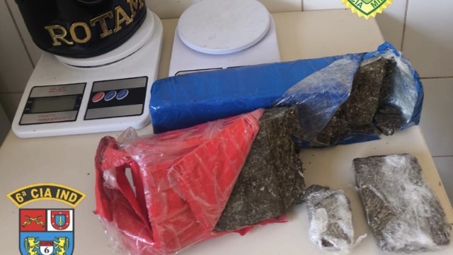 O homem foi abordado em via pública após denúncias sobre a prática do crime de tráfico. Inicialmente, os policiais localizaram com ele 46 gramas de maconha.