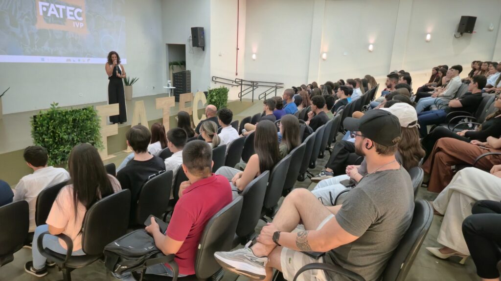 Pollyana Ferretti agradeceu à desembargadora por aceitar o convite da Fatec Ivaiporã e enfatizou o valor da troca entre quem ensina e quem está em processo de formação.