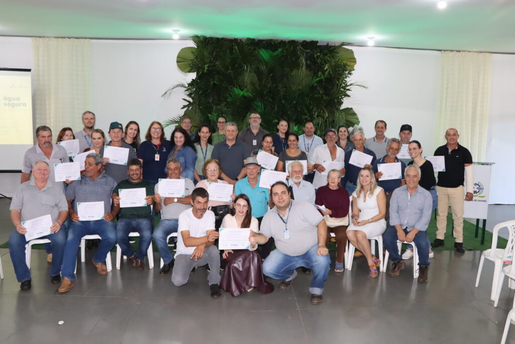 O evento contou com a presença do gerente regional da Sanepar, Luiz Carlos Jacovassi, gerente comercial da Sanepar, Evelise Bertão Pinheiro Kluk, vereadora Gertrudes Bernardy, chefe do Núcleo da Secretaria Estadual de Agricultura e Abastecimento, Vitória Holzmann, e do representante do Instituto Água e Terra (IAT), Ademar Soares.