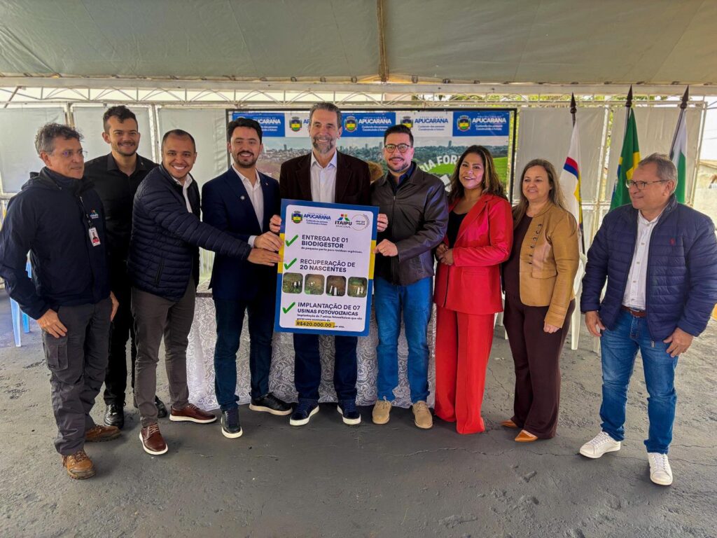 Equipamentos para a ala de radioterapia do Hospital da Providência, biodigestor para a Escola Municipal Joaquim Vicente de Castro e um caminhão e uma esteira para a Cooperativa de Catadores de Recicláveis (Cocap) foram entregues oficialmente na manhã desta segunda-feira (30/06) em Apucarana. Também foi anunciado a recuperação de 20 nascentes e implantação de 7 usinas fotovoltaicas, que vão gerar economia de R$ 420 mil por ano. O valor global dos investimentos soma R$ 8.692.570,51, repassados pelo Governo Federal, via Itaipu Binacional.