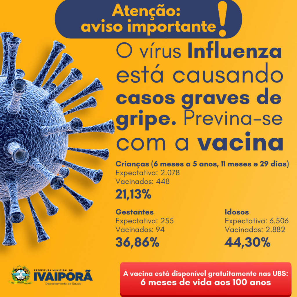 O Departamento de Saúde da Prefeitura de Ivaiporã alerta a população sobre o aumento da circulação do vírus Influenza e a confirmação de quadros graves e, em alguns casos, óbito.