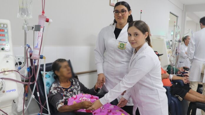 Durante o estágio, os acadêmicos acompanham procedimentos, observam o trabalho da equipe de Enfermagem e entendem as características do atendimento a pacientes renais crônicos, que permanecem por horas em tratamento e demandam atenção constante.