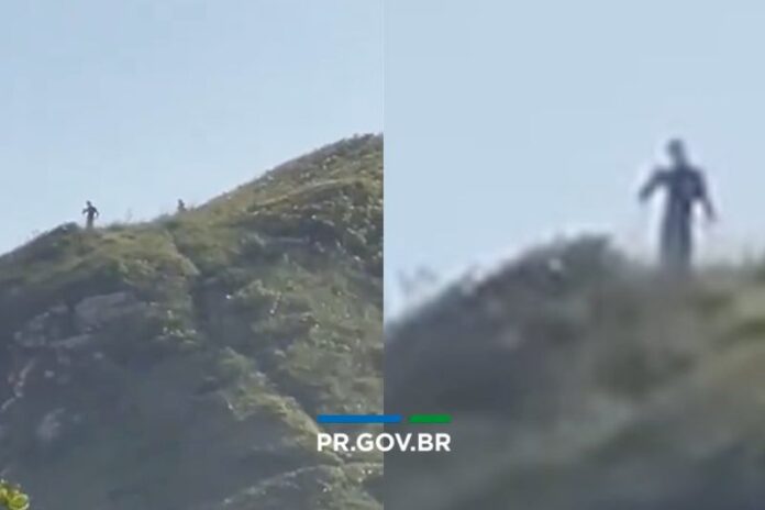 As imagens de baixa qualidade são acompanhadas de comentários que narram a aparição de supostos seres desconhecidos com cerca de 3 metros de altura.
