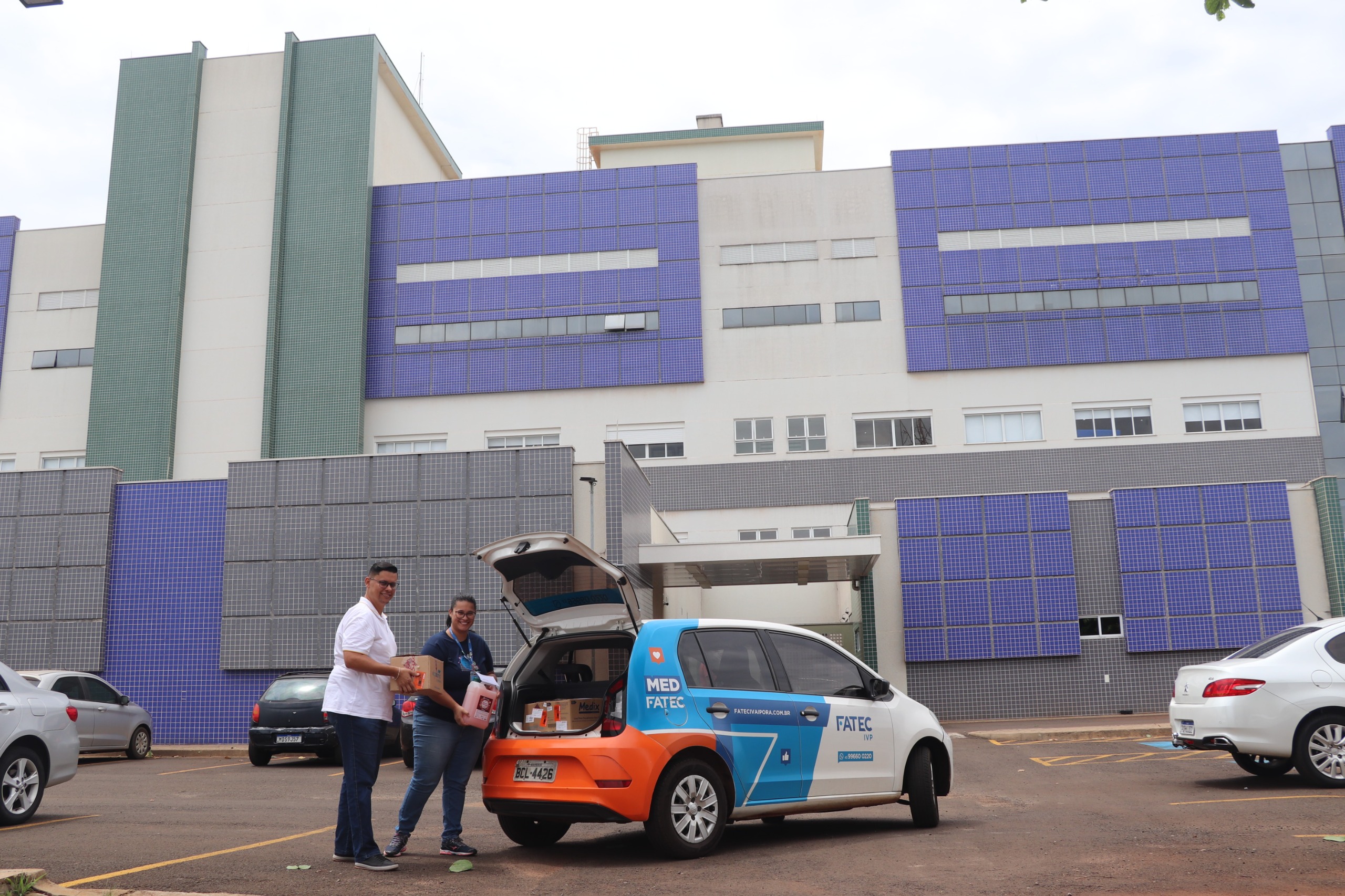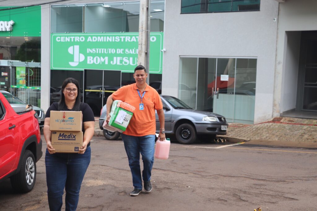 A relação entre a Fatec Ivaiporã, Hospital Regional Marcelo Reis e o Instituto de Saúde Bom Jesus (ISBJ) vai além do estágio direcionado aos acadêmicos de Medicina. O diretor acadêmico Roni Ferreira e a enfermeira Amanda Ferreira realizaram a reposição de materiais de proteção e higienização utilizados na rotina hospitalar.