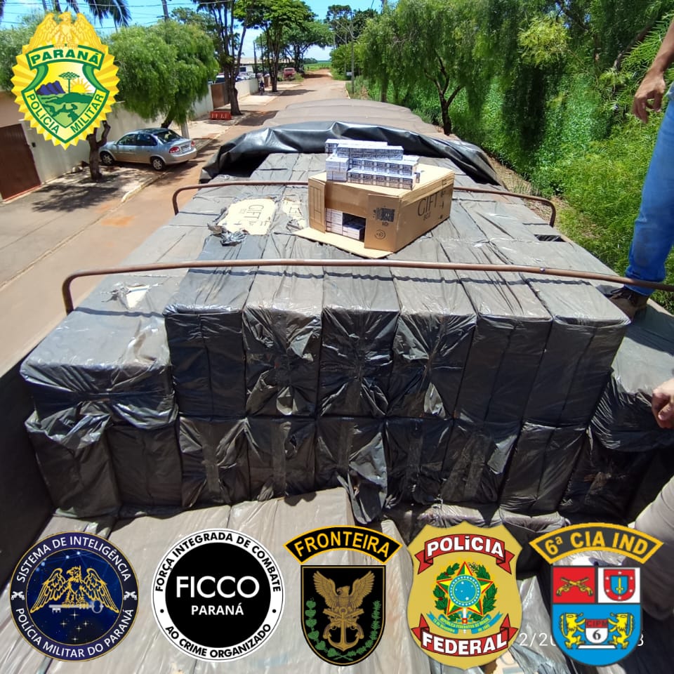 A Força Integrada de Combate ao Crime Organizado no Paraná (FICCO/PR), em parceria com a Polícia Federal, NEPOM de Guaíra, BPMOA, NEPOM de Maringá e Agência Local de Inteligência da 6ª CIPM, deflagrou uma ação que culminou na apreensão de 500 caixas de cigarros da marca Gift, produtos de origem estrangeira e considerados contrabandeados.