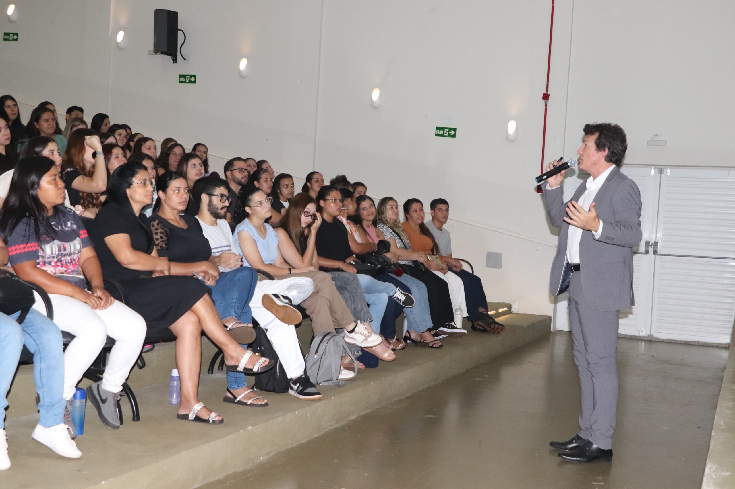 Na quinta-feira, 26 de fevereiro, a coordenação do curso de Pedagogia da Fatec Ivaiporã promoveu a aula magna destinada aos acadêmicos do 1º ao 5º período com a participação do psicólogo e gestor de Gente & Gestão da Cresol, Marco Pimenta. A proposta foi discutir liderança e postura profissional no mercado de trabalho.
