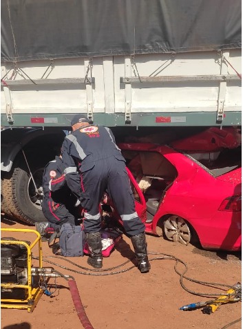 De acordo com informações do Corpo de Bombeiros, o carro ficou prensado no semirreboque da carreta, e duas vítimas ficaram presas nas ferragens.