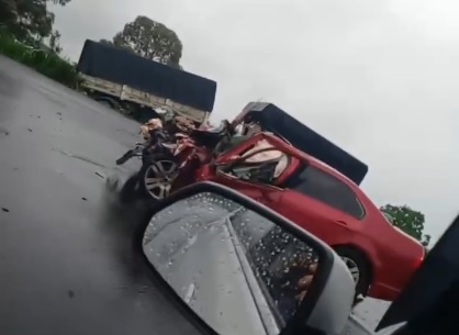 O Fusion ficou completamente destruído. O caminhão teve danos leves.