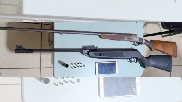 Ao chegar à residência do suspeito, a equipe da ROTAM foi recebida com o homem colocando as mãos na cabeça e deitando no chão. Durante a abordagem, o suspeito admitiu possuir uma espingarda e uma arma de pressão Rossi, que estavam guardadas em seu armário. Na cômoda do quarto, foram encontrados oito estojos deflagrados de calibre .22 e um estojo deflagrado de calibre 20. Além disso, um veículo Gol, condizente com a descrição fornecida pela vítima e testemunhas, foi localizado no local com o motor ainda quente, contradizendo a afirmação do suspeito de que não havia saído com o carro à noite.