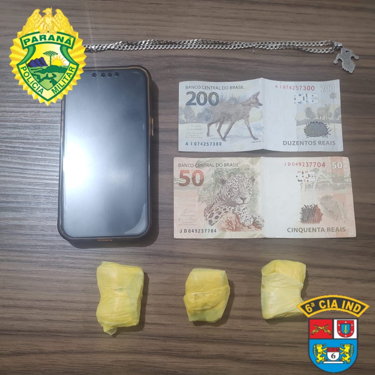 Durante a operação, os policiais encontraram em posse do suspeito 27 gramas de maconha, R$ 250,00 em dinheiro e outros materiais de origem duvidosa, indicando a prática do tráfico de drogas. O indivíduo foi detido e encaminhado à delegacia de polícia para as providências cabíveis.