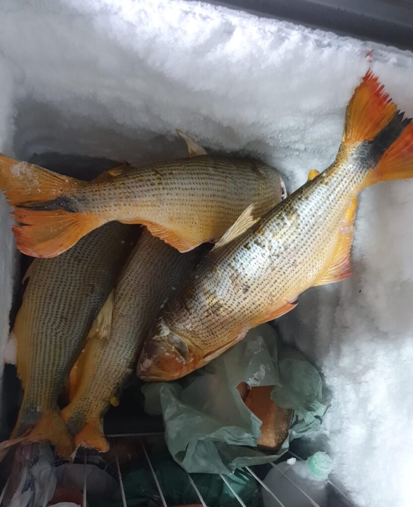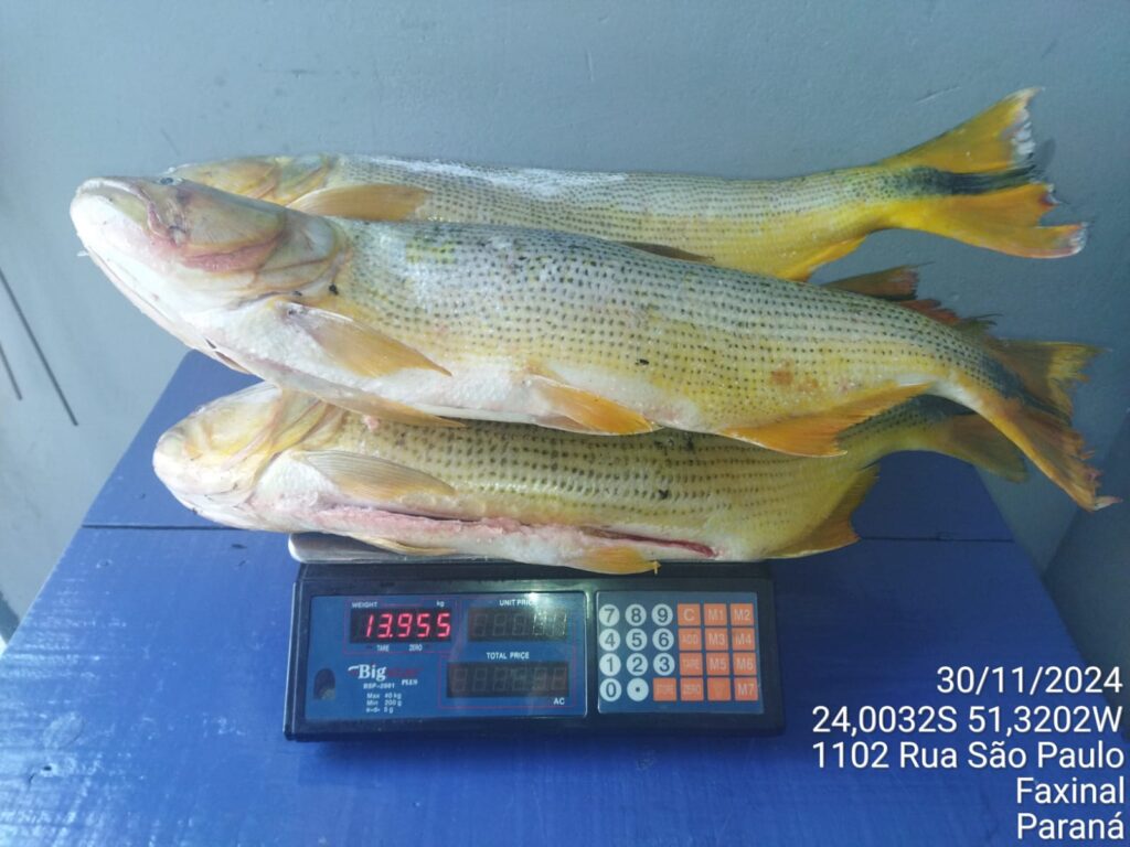 No local, os policiais encontraram um freezer contendo quatro peixes dourados, totalizando 13,955 kg. De acordo com a Lei Estadual nº 19789/2018, que proíbe a pesca, o transporte e o armazenamento do da espécie, o material foi apreendido e o responsável pela prática foi detido e encaminhado para a Polícia Civil em Faxinal.