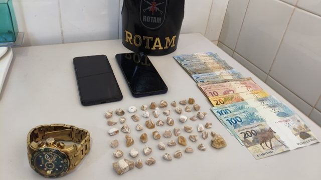 Além do crack, a PM apreendeu sacolas plásticas e uma faca, R$ 458,00 em dinheiro, dois celulares, dois relógios e uma câmera. O homem recebeu voz de prisão e foi encaminhado à delegacia para as providências cabíveis.