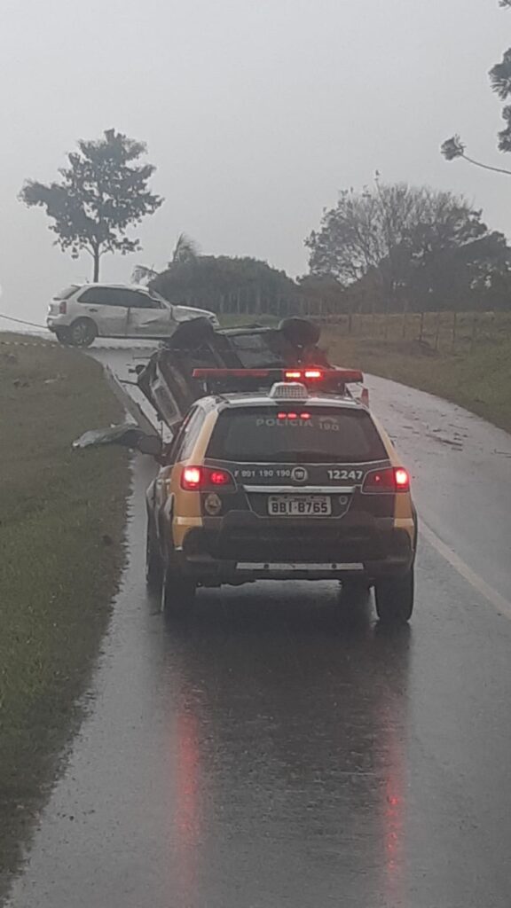 De acordo com informações oficiais, o condutor de um veículo Gol quadrado perdeu o controle da direção, o carro saiu da pista, capotou e após colidiu contra um Gol bola.