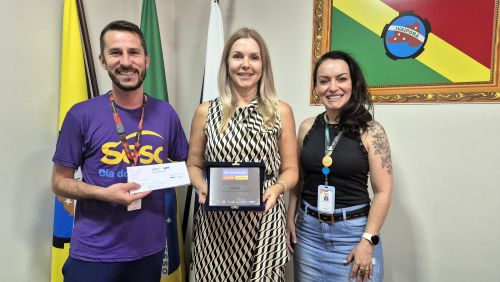 A Prefeitura de Ivaiporã recebeu o reconhecimento pela expressiva participação no Dia do Desafio 2024. A gerente do Sesc Ivaiporã, Andrea Souza Lima, e o técnico de atividades, Vítor Henrique Kovalski, estiveram no gabinete da prefeita interina Gertrudes Bernardy para agradecer o apoio do Executivo à campanha, entregar uma placa comemorativa e reforçar o convite para a edição de 2025.