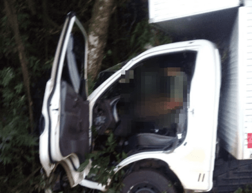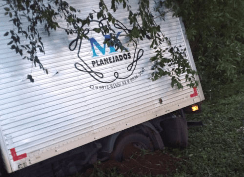 Um caminhão baú de marca Hyundai com placas de Ivaiporã teria saído da pista da pista e colidido contra uma árvore na região da Linha Munhoz entre Manoel Ribas e Cândido de Abreu