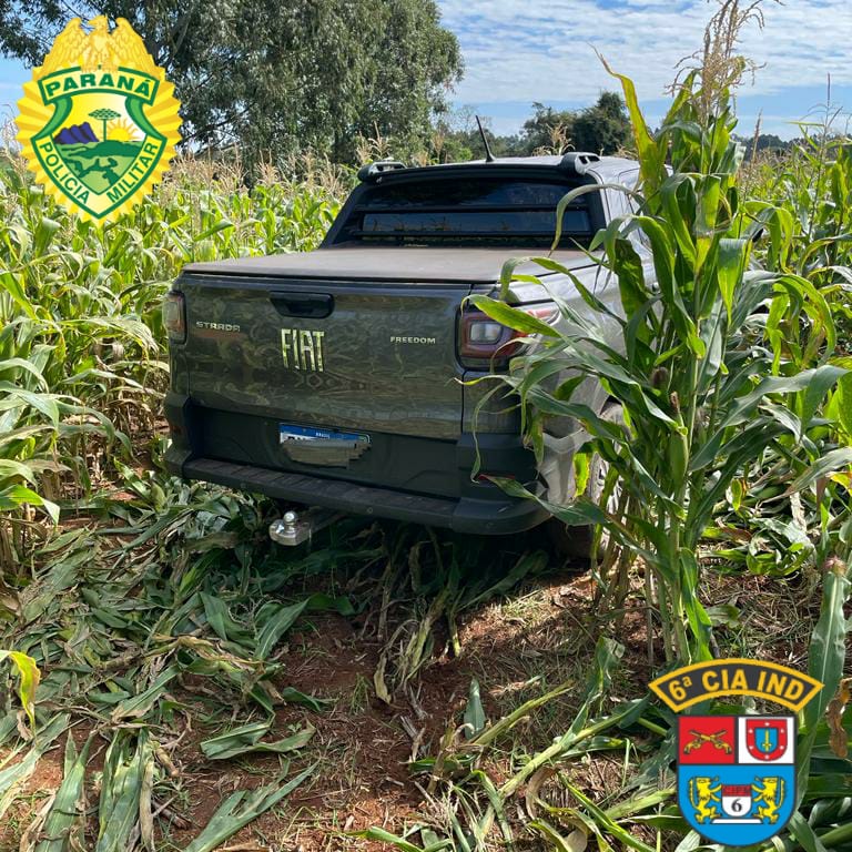 Enquanto as buscas tinham sequência, a equipe de Mauá da Serra localizou a camioneta Fiat Strada abandonada em uma plantação, e após certificação dos dados, constatou que o veículo continha indicativo de furto e roubo conforme boletim.