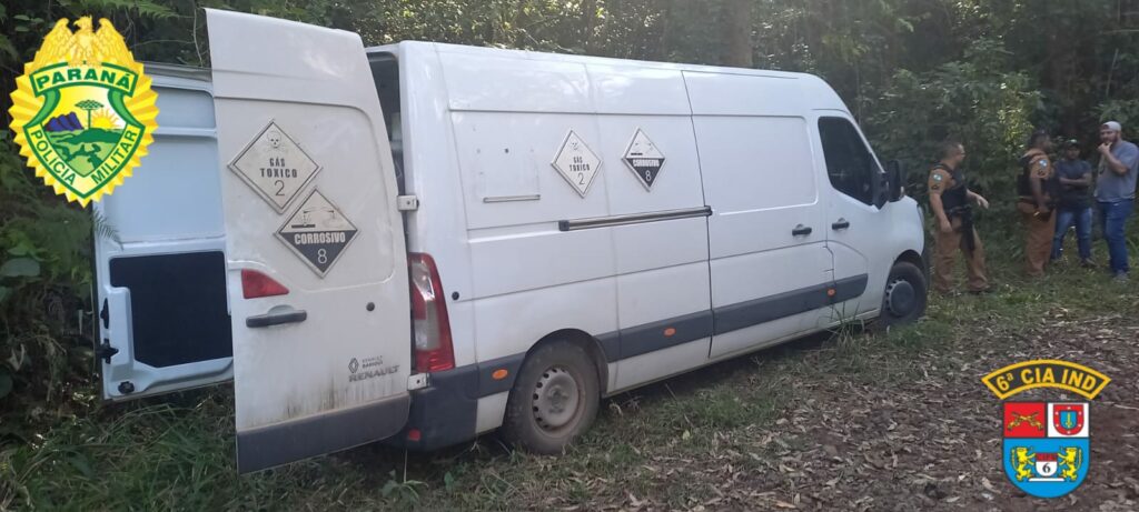Em outra frente de busca, as equipes de Faxinal e Borrazópolis encontraram a van roubada nas proximidades do local do roubo do Toyota Corolla Cross. O veículo estava em uma ribanceira e foi necessário o uso de um trator para movê-lo do local. A van estava danificada, mas foi recuperada junto com os cilindros de amônia que estavam no seu interior.
